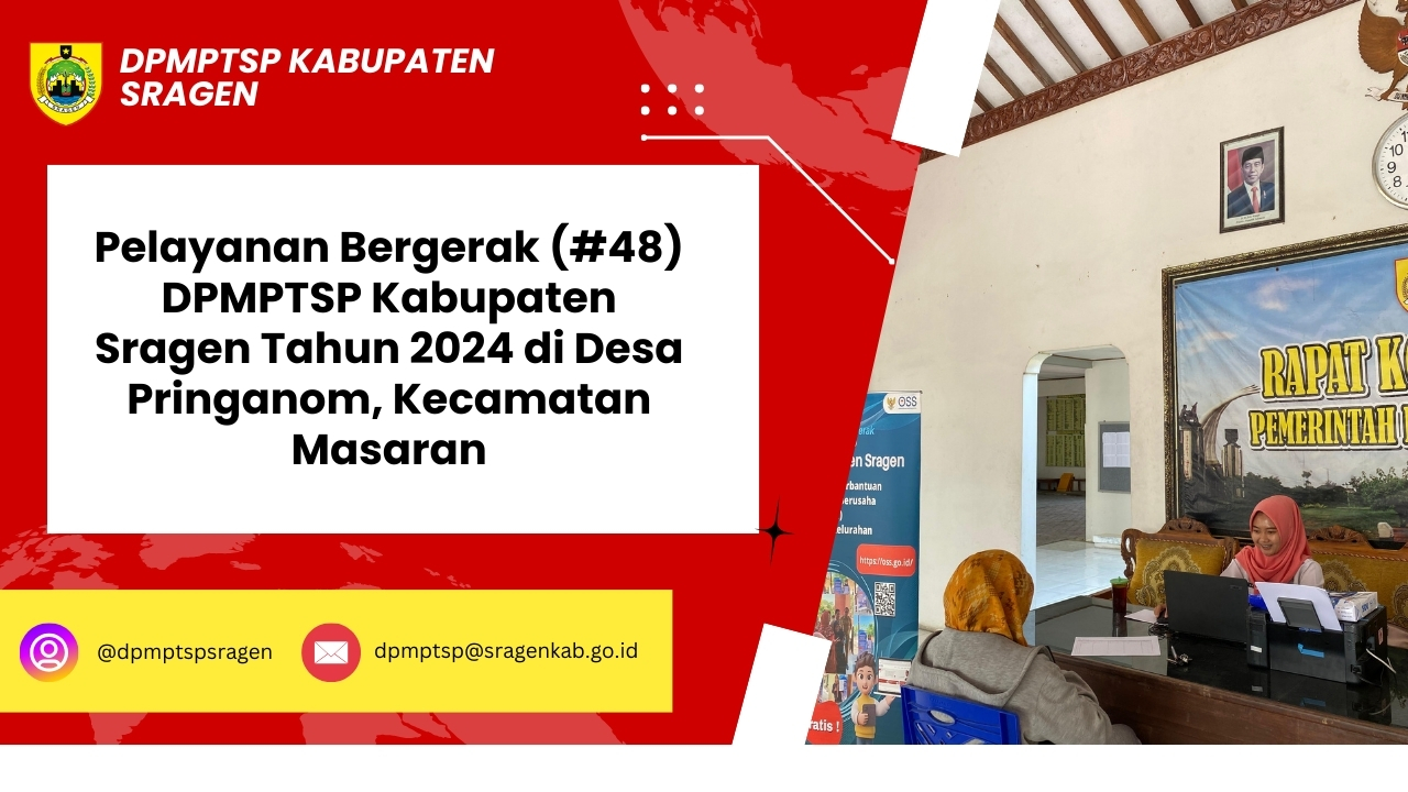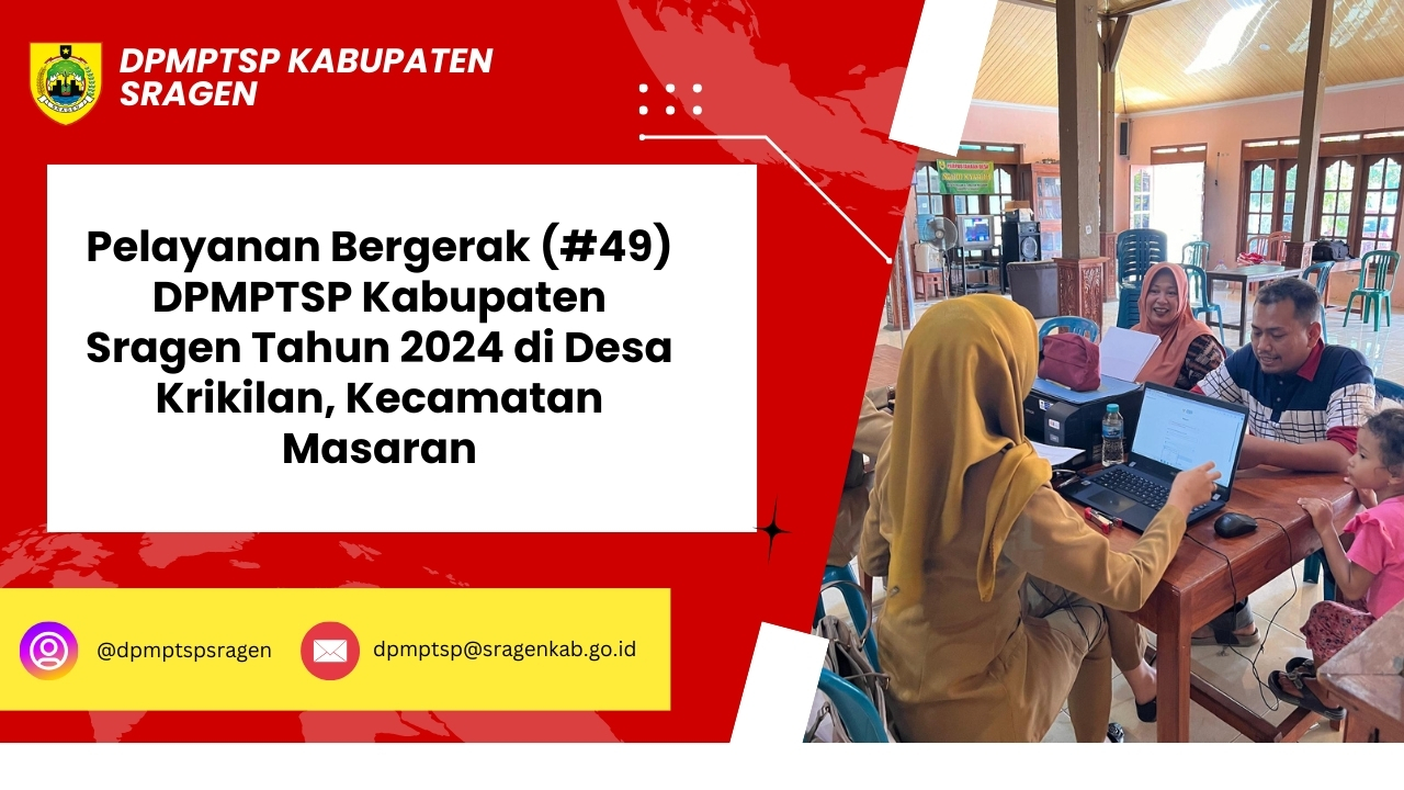 Pada Kamis (29/8/2024) Pelayanan Bergerak DPMPTSP Kabupaten Sragen (#49) berada di wilayah Kecamatan Masaran, tepatnya d...