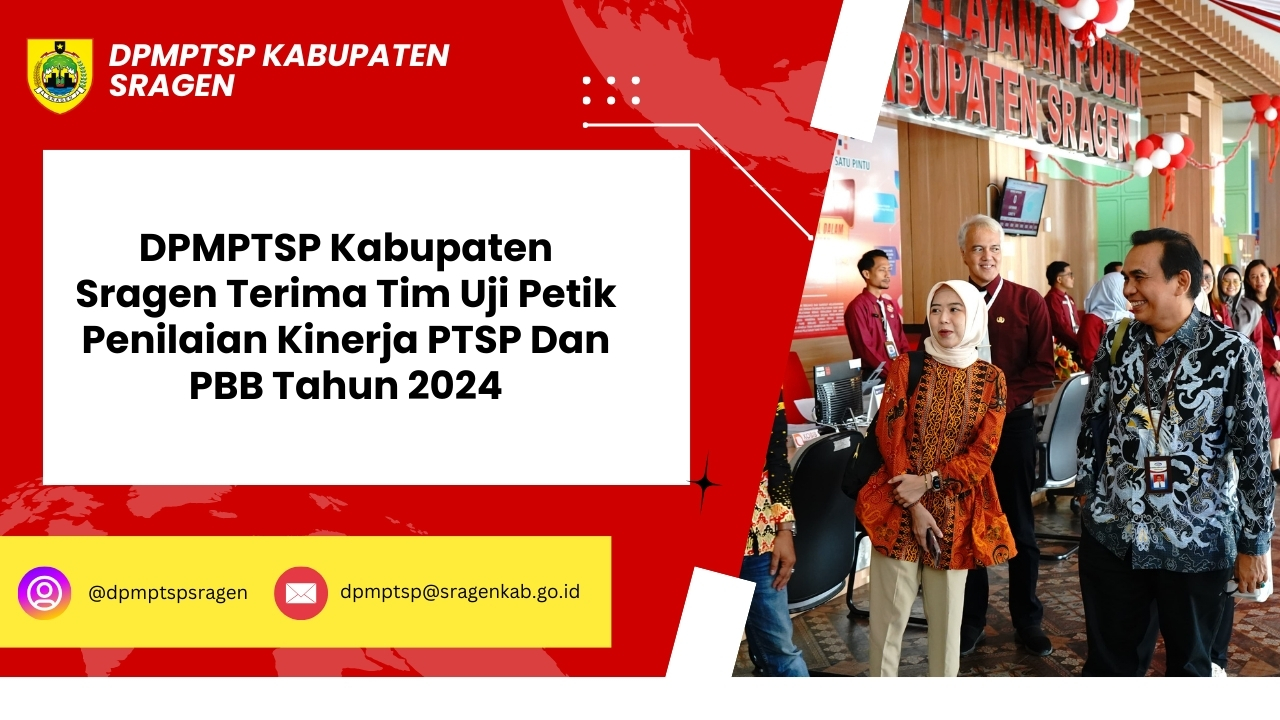 Pada Kamis (29/08/2024), Pemerintah Kabupaten Sragen menerima Tim Uji Petik Penilaian Kinerja PTSP dan PPB Tahun 2024, y...