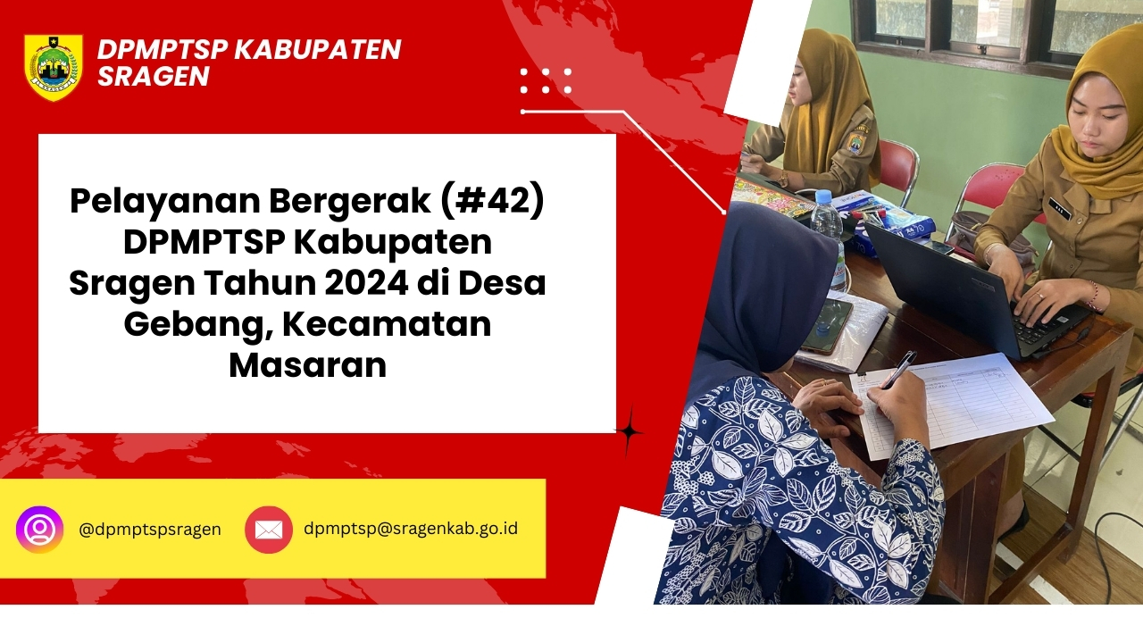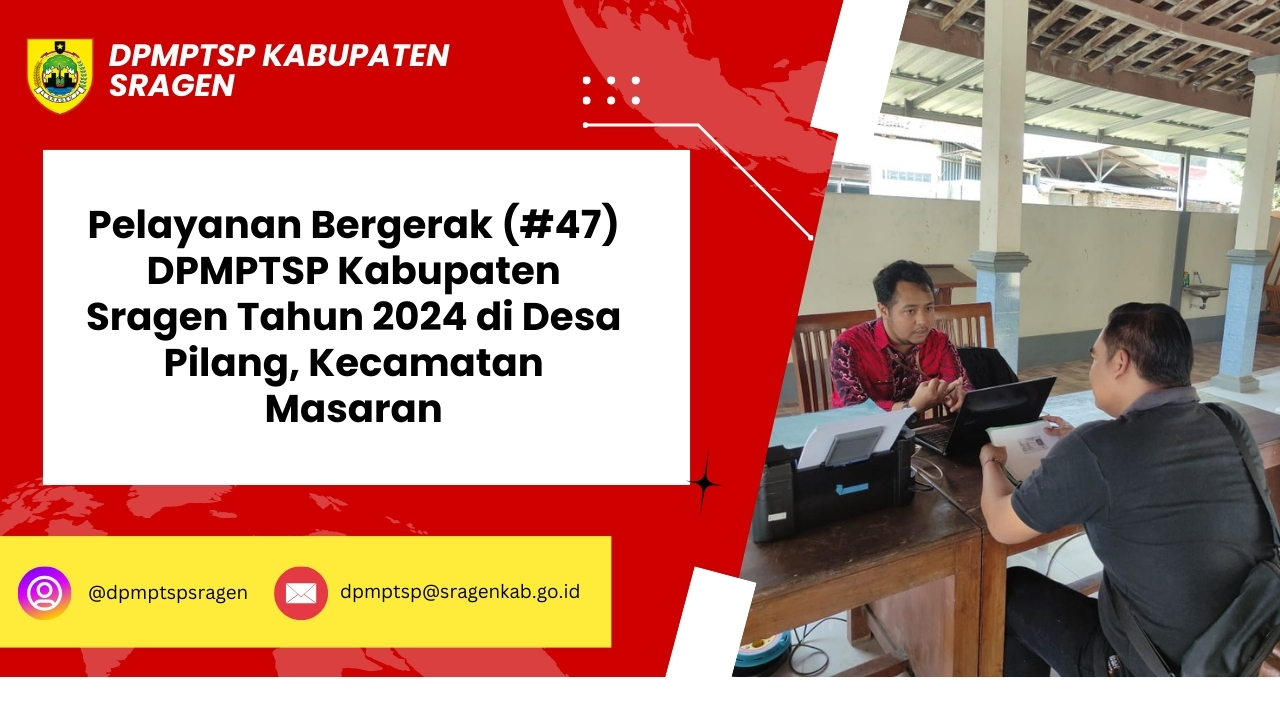 Pada Rabu (21/8/2024) Pelayanan Bergerak DPMPTSP Kabupaten Sragen (#44) berada di wilayah Kecamatan Masaran, tepatnya di...