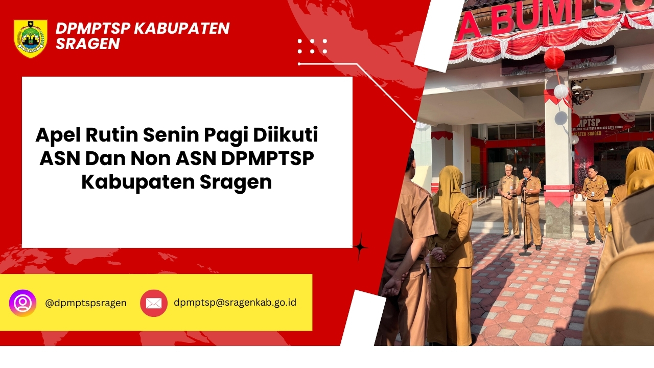 Kepala DPMPTSP Kabupaten Sragen, Bapak Dwi Agus Prasetyo, S.STP, M.Si memimpin apel rutin Senin pagi (19/08/2024) yang d...