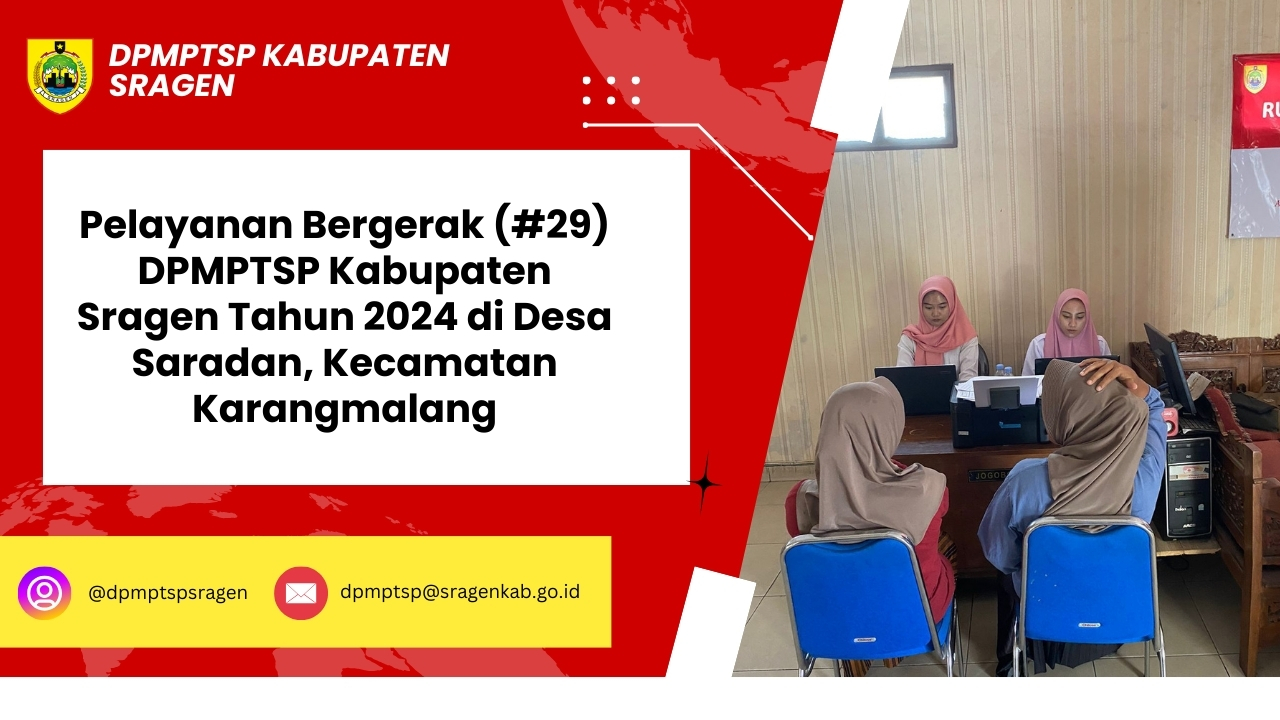 Pada Rabu (24/7/2024) Pelayanan Bergerak DPMPTSP Kabupaten Sragen (#29) berada di wilayah Kecamatan Karangmalang, tepatn...