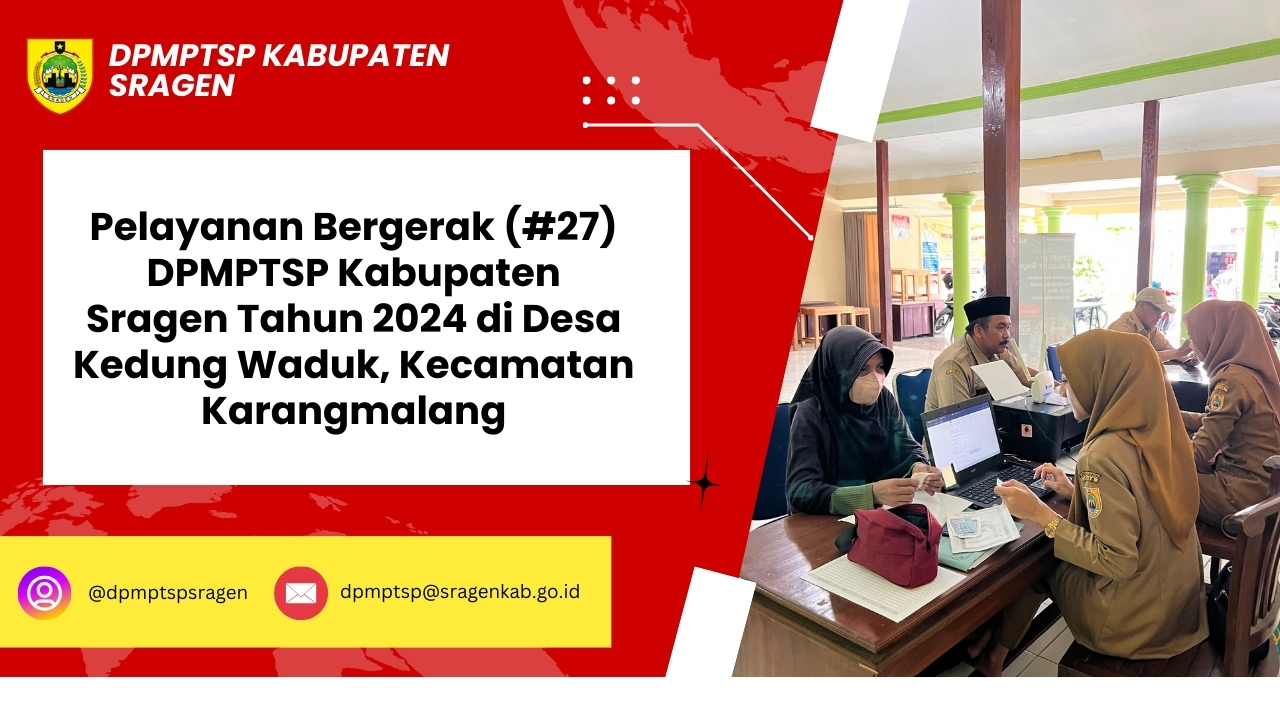 Pada Senin (22/7/2024) Pelayanan Bergerak DPMPTSP Kabupaten Sragen (#27) berada di wilayah Kecamatan Karangmalang, tepat...