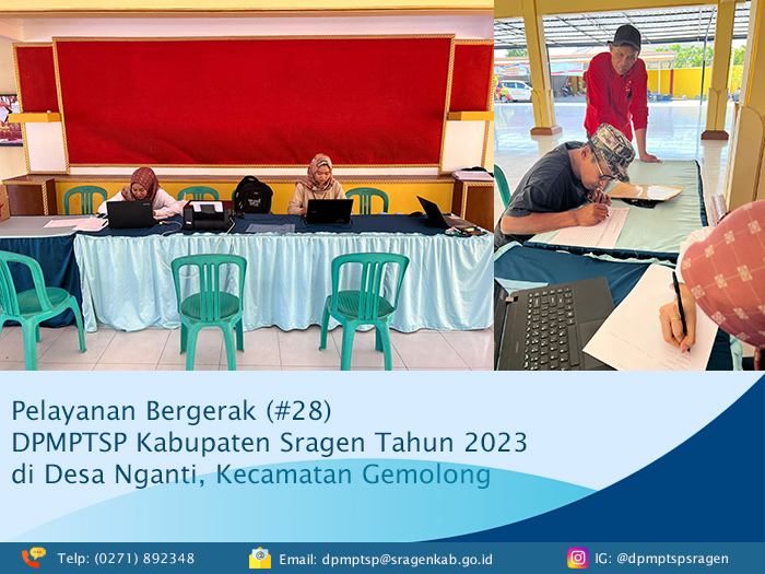 Pelayanan Bergerak (#28) DPMPTSP Kabupaten Sragen bertempat di kantor Desa Nganti, Kecamatan Gemolong pada Jumat (01/09/...