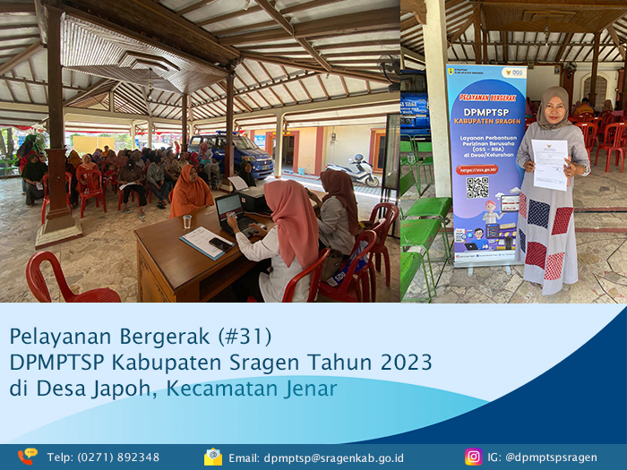 Pada Rabu (06/09/2023) Pelayanan Bergerak DPMPTSP Kabupaten Sragen (#31) berada di wilayah Kecamatan Jenar, tepatnya di ...
