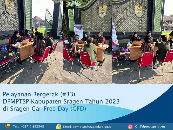 Pada Minggu (10/09/2023) untuk pertama kalinya DPMPTSP Kabupaten Sragen mengadakan Pelayanan Bergerak di Sragen Car Free...
