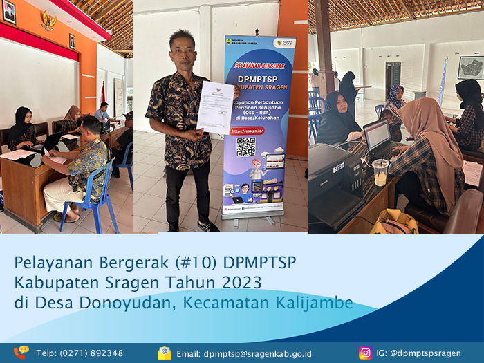 Pelayanan Bergerak (#10) DPMPTSP Kabupaten Sragen bertempat di kantor Desa Donoyudan, Kecamatan Kalijambe pada Jumat (04...