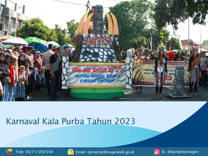 DPMPTSP Kabupaten Sragen berpartisipasi dalam karnaval memperingati Hari Jadi ke-277 Kabupaten Sragen Tahun 2023 pada Mi...