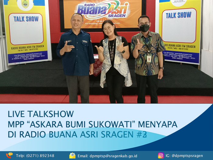 Live Talkshow MPP Askara Bumi Sukowati Menyapa di Radio Buana Asri Sragen kembali hadir pada hari ini Kamis (16/3/2023) ...