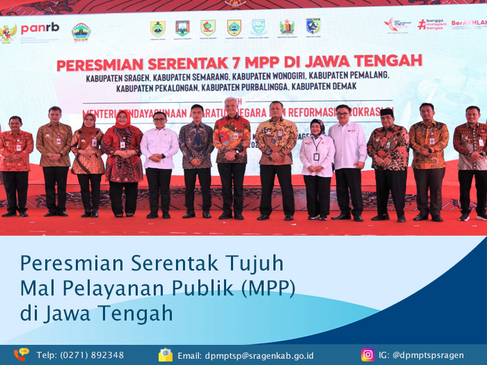 Pemerintahan Kabupaten Sragen menjadi tuan rumah pada acara Peresmian Serentak 7 (Tujuh) Mal Pelayanan Publik di Jawa Te...