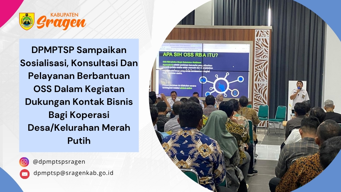 Pada Rabu (9/7/2025) DPMPTSP Kabupaten Sragen mengikuti kegiatan Dukungan Kontak Bisnis bagi Koperasi Desa/Kelurahan Mer...