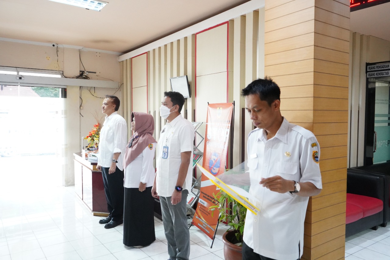 Karyawan dan karyawati DPMPTSP Kabupaten Sragen mengikuti kegiatan apel rutin Rabu pagi pada Rabu, (23/11/2022) bertempat di Ruang Pelayanan DPMPTSP Kabupaten Sragen.