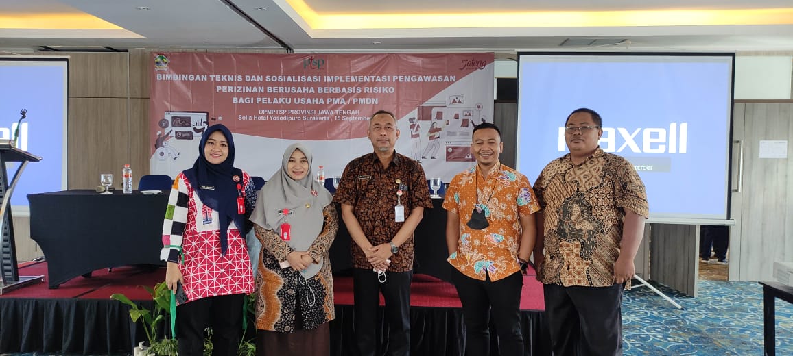 DPMPTSP Kabupaten Sragen mendampingi Pengusaha Menengah Besar mengikuti Bimbingan Teknis dan Sosialisasi Implementasi Pengawasan Perizinan Berusaha Berbasis Resiko bagi Pelaku Usaha PMA/PMDN yang diselenggarakan oleh DPMPTSP Provinsi Jawa Tengah pada hari Kamis tanggal 15 September 2022 bertempat di Solia Hotel Yosodipuro Surakarta.
