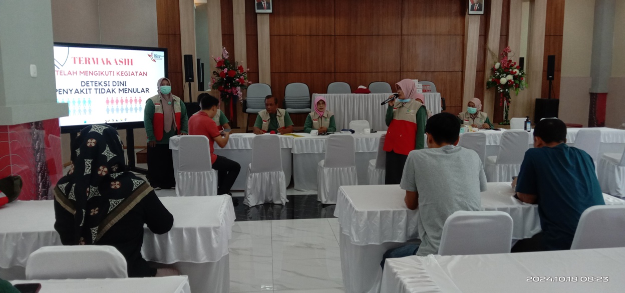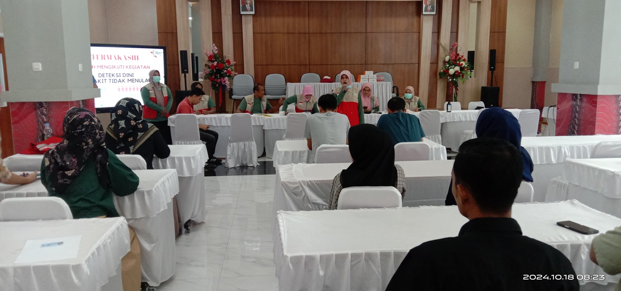 Dalam rangka peningkatan pelaksanaan Program Pencegahan dan Pengendalian Penyakit Tidak Menular (P2PTM) Dinas Kesehatan Kabupaten Sragen bersama Puskesmas melaksanakan deteksi dini terhadap pegawai di OPD yang berada lingkungan Pemerintah Kabupaten Sragen, salah satunya di DPMPTSP Kabupaten Sragen pada Jumat (18/10/2024) bertempat di Aula MPP Askara Bumi Sukowati Kabupaten Sragen.