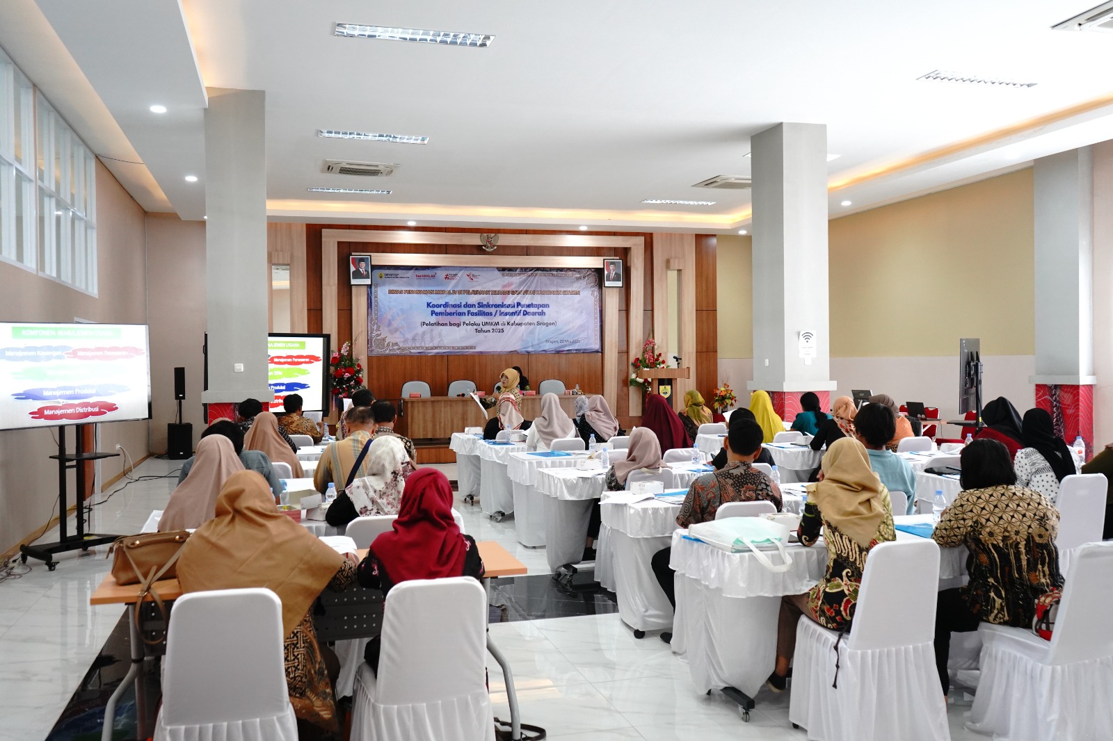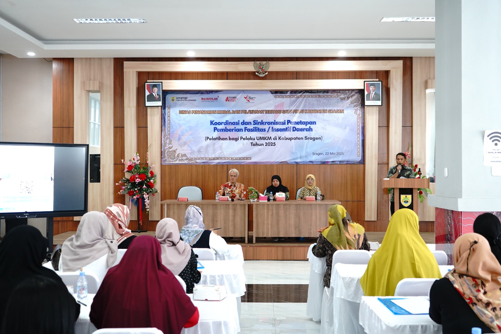Dinas Penanaman Modal dan Pelayanan Terpadu Satu Pintu Kabupaten Sragen kembali menyelenggarakan Pelatihan Bagi Pelaku UMKM di Kabupaten Sragen pada Kamis (22/5/2025) bertempat di Aula Mal Pelayanan Publik Askara Bumi Sukowati Kabupaten Sragen, dan dihadiri oleh 32 (tiga puluh dua) peserta yang memiliki usaha di bidang pengolahan pangan. Pelatihan ini merupakan pelatihan tahap pertama dari lima tahap yang akan dilaksanakan di tahun 2025.