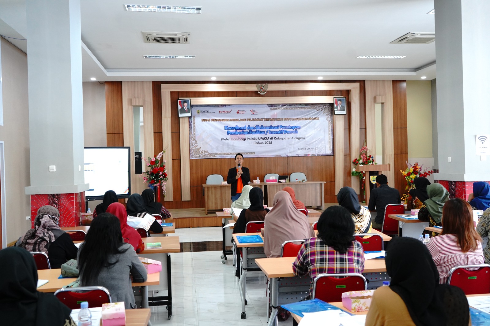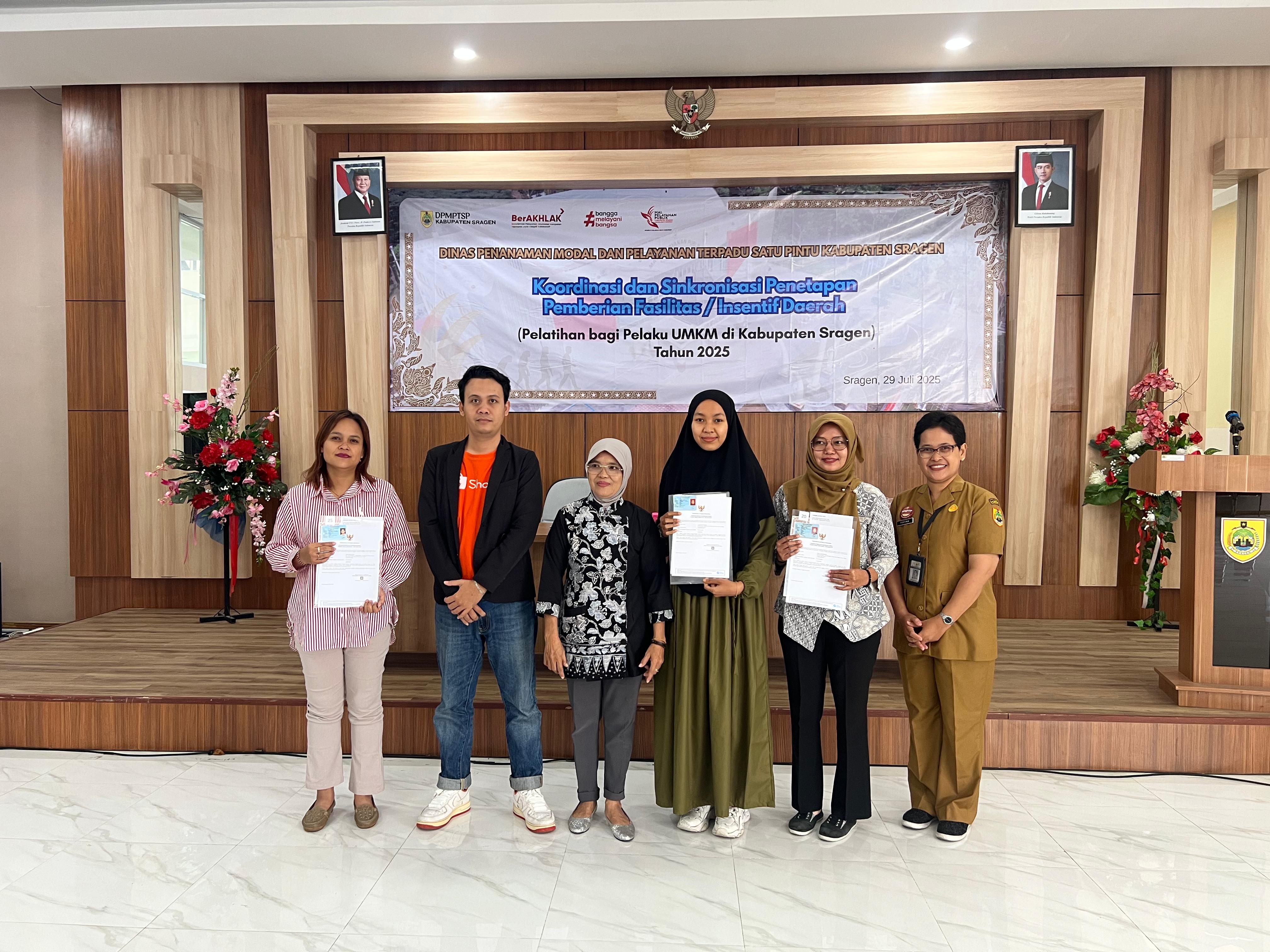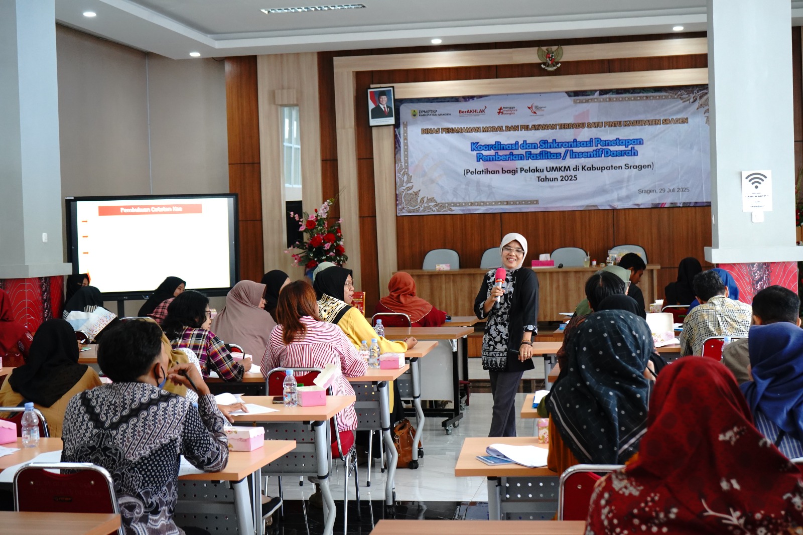 Dinas Penanaman Modal dan Pelayanan Terpadu Satu Pintu Kabupaten Sragen kembali menyelenggarakan Pelatihan Bagi Pelaku UMKM di Kabupaten Sragen pada Selasa (29/7/2025) bertempat di Aula Mal Pelayanan Publik Askara Bumi Sukowati Kabupaten Sragen, dan dihadiri oleh 32 (tiga puluh dua) peserta dari 36 peserta yang diundang. Latar belakang peserta adalah pelaku usaha dari berbagai bidang usaha (kuliner, konveksi, olshop, craft, dsb). Pelatihan ini merupakan pelatihan tahap ketiga dari lima tahap yang akan dilaksanakan di tahun 2025.