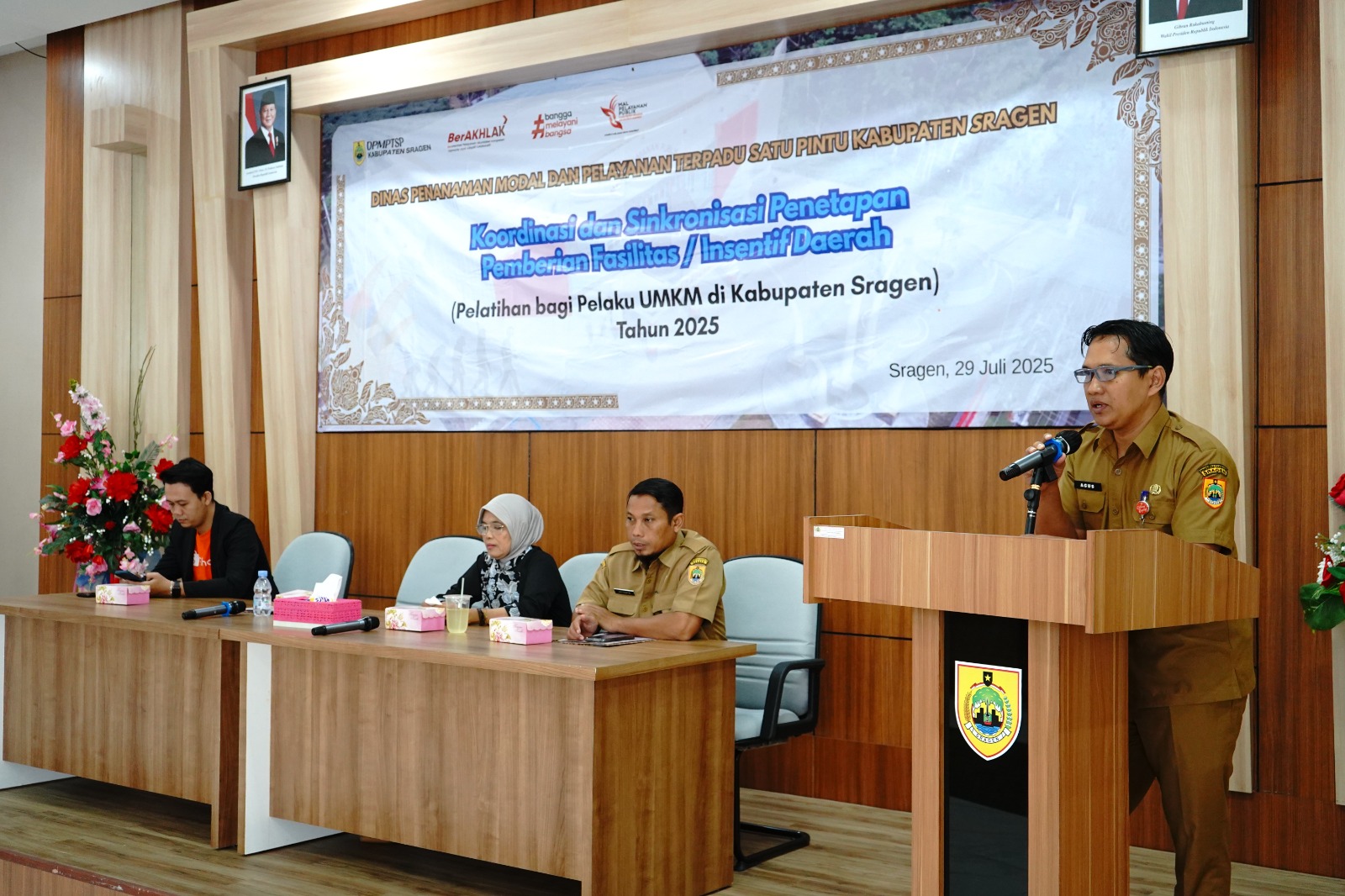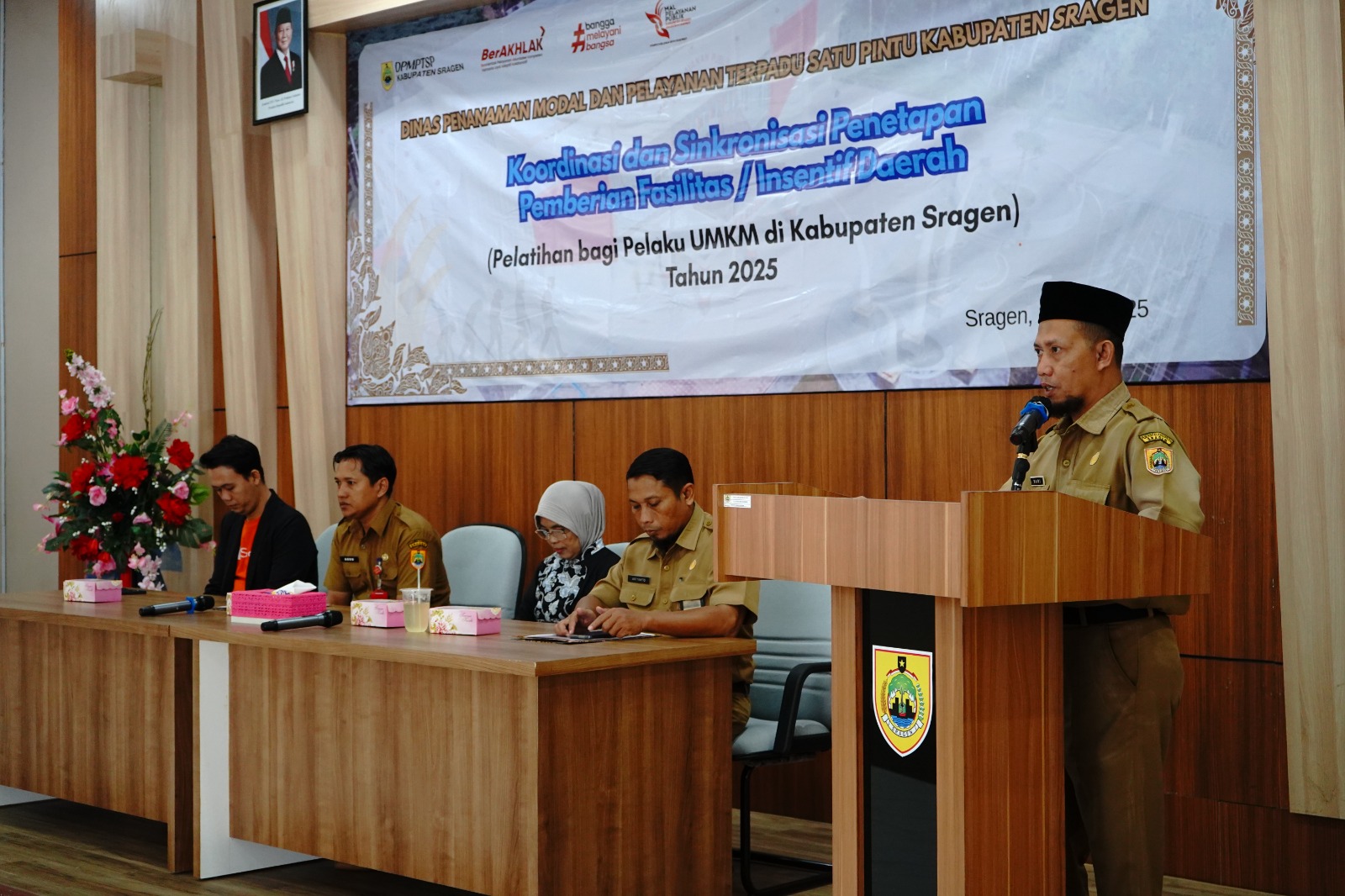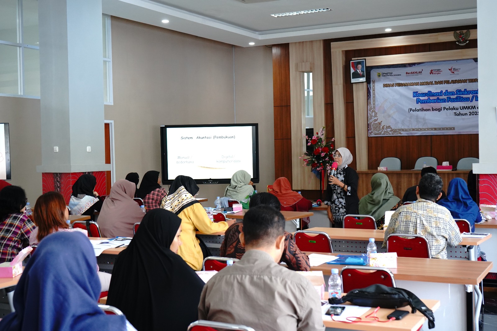 Dinas Penanaman Modal dan Pelayanan Terpadu Satu Pintu Kabupaten Sragen kembali menyelenggarakan Pelatihan Bagi Pelaku UMKM di Kabupaten Sragen pada Selasa (29/7/2025) bertempat di Aula Mal Pelayanan Publik Askara Bumi Sukowati Kabupaten Sragen, dan dihadiri oleh 32 (tiga puluh dua) peserta dari 36 peserta yang diundang. Latar belakang peserta adalah pelaku usaha dari berbagai bidang usaha (kuliner, konveksi, olshop, craft, dsb). Pelatihan ini merupakan pelatihan tahap ketiga dari lima tahap yang akan dilaksanakan di tahun 2025.