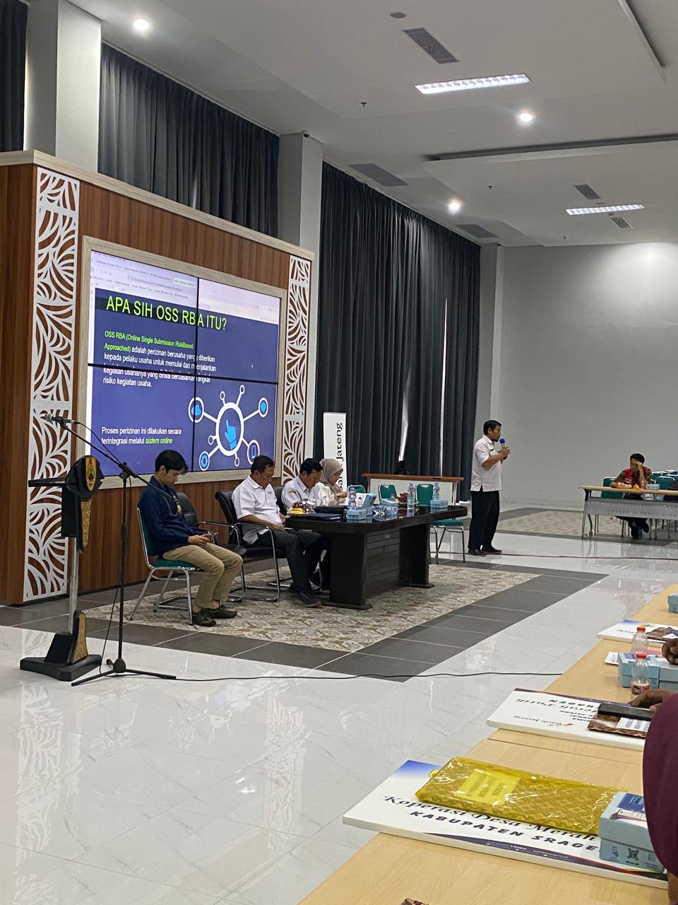 Pada Rabu (9/7/2025) DPMPTSP Kabupaten Sragen mengikuti kegiatan Dukungan Kontak Bisnis bagi Koperasi Desa/Kelurahan Merah Putih, yang dihadiri oleh Bapak Bupati Sragen, Bapak Sekretaris Daerah Kabupaten Sragen, Perwakilan Dinas Koperasi dan UKM Provinsi Jawa Tengah, Kantor Pelayanan Pajak Pratama Karanganyar, OPD terkait, Ikatan Notaris Indonesia, serta perwakilan setiap Koperasi Desa/Kelurahan Merah Putih se-Kabupaten Sragen, bertempat di Aula Kantor Terpadu Pemda Kabupaten Sragen. Mitra yang turut hadir pada acara ini antara lain Perum Bulog Kanwil Jateng dan DIY, PT. Pertamina Patra Niaga, PT. Pupuk Indonesia, PT. Bank Pembangunan Dearah Jawa Tengah, PT. Jateng Agro Berdikari, serta Bapenda Provinsi Jawa Tengah.