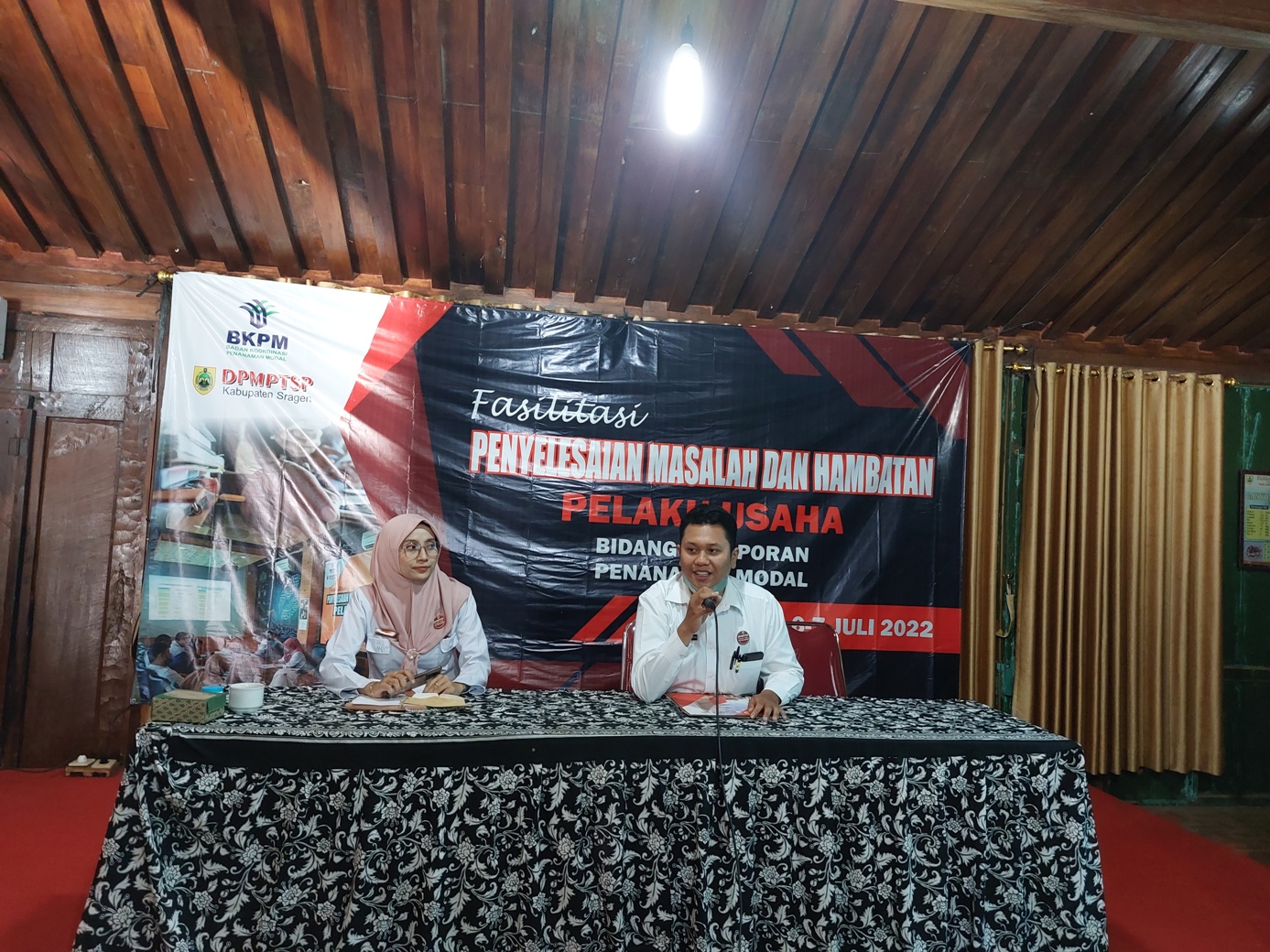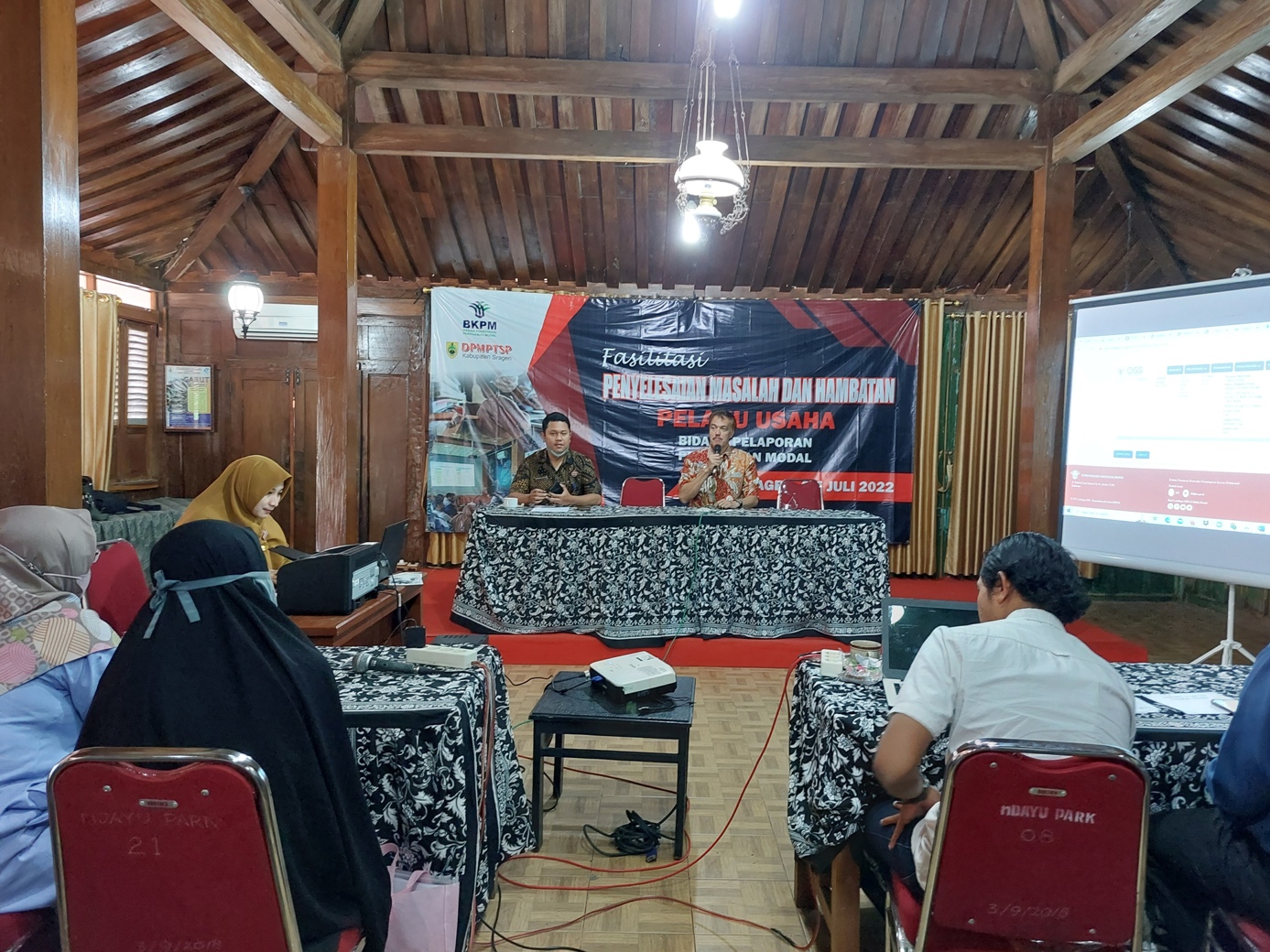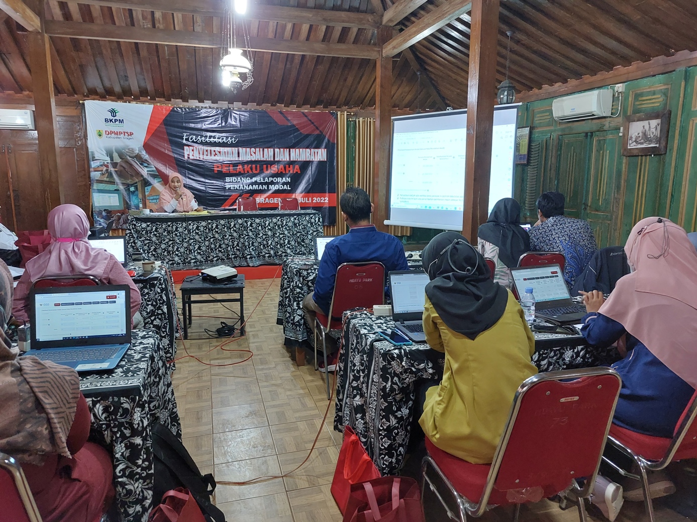 Salah satu kewajiban pelaku usaha adalah menyampaikan Laporan Kegiatan Penanaman Modal (LKPM), namun masih banyak pelaku usaha yang belum mengetahui apa dan bagaimana cara menyampaikan LKPM. Untuk itulah DPMPTSP Kabupaten Sragen mengadakan fasilitasi Penyelesaian Permasalahan dan Hambatan Pelaku Usaha, khususnya bagi pelaku usaha yang mengalami kendala dalam penyampaian LKPM melalui OSS RBA. Kegiatan dilaksanakan selama 2 hari dipandu langsung dari petugas pendamping DAK, Erinsyah Aditya, Skom dan Analis Kebijakan Ahli Muda DPMPTSP, Maya Widiarti, Skom,Msi. Kegiatan dilaksanakan di Pendopo VIP Ndayu Park Saradan, Karangmalang - Sragen, pada hari Rabu-Kamis tgl 6 - 7 Juli 2022 dengan para peserta pelaku usaha dari berbagai sektor usaha. Tujuan pertemuan ini bisa memberikan gambaran, informasi dan solusi bagi pelaku usaha yang tengah mengalami kendala dalam penyampaian LKPM.