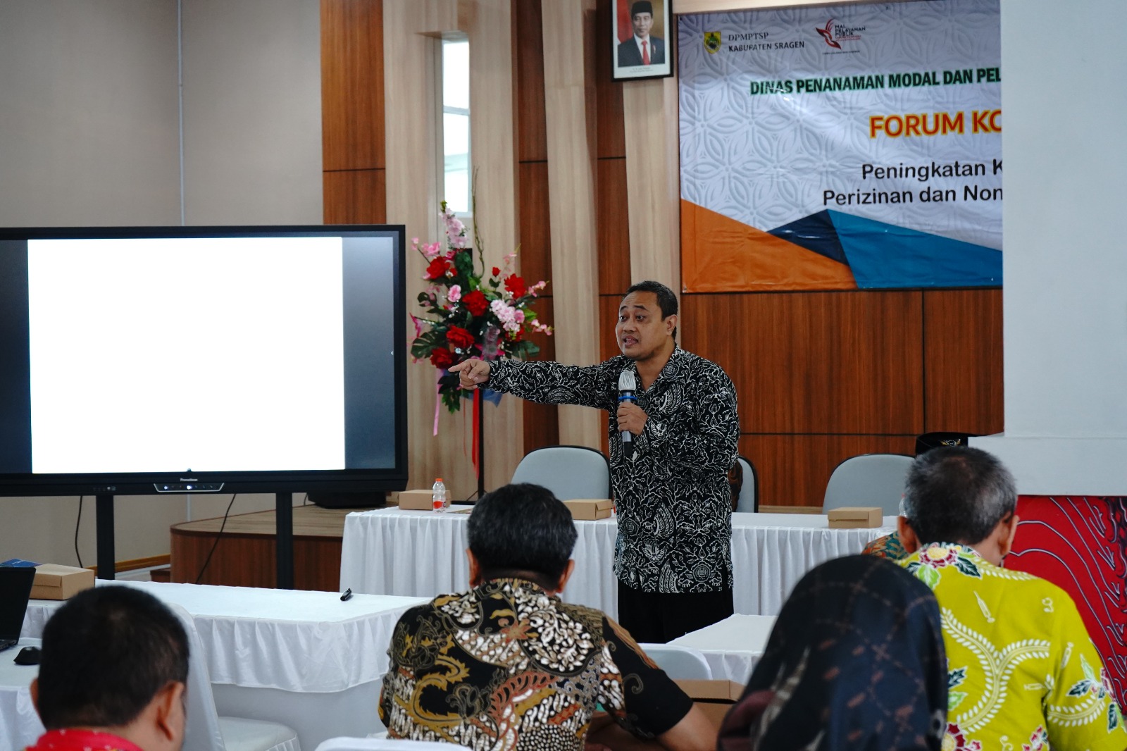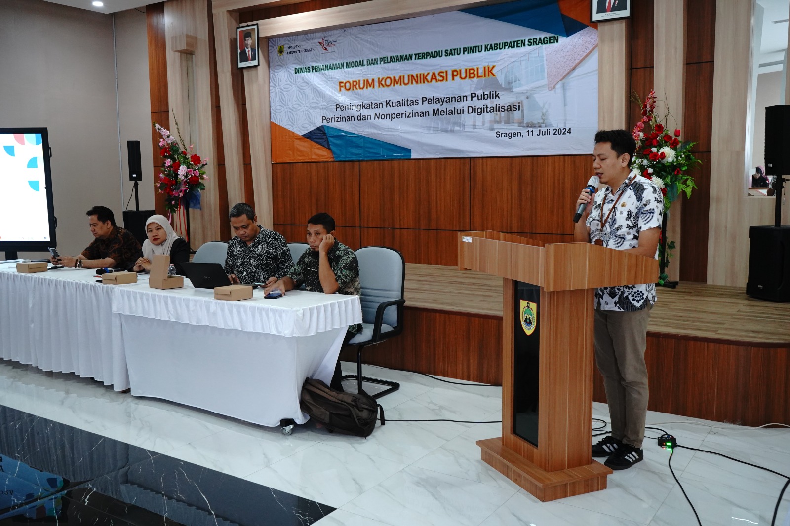 Pada hari Kamis (11/7/2024), DPMPTSP Kabupaten Sragen menyelenggarakan Acara Forum Konsultasi Publik (FKP) Peningkatan Kualitas Pelayanan Publik Perizinan dan Nonperizinan Melalui Digitalisasi yang bertempat di Aula MPP Askara Bumi Sukowati Kabupaten Sragen yang dihadiri oleh para pihak perwakilan dari penyelenggara layanan, pengguna layanan, Stakeholders Pelayanan Publik, Ahli/Praktisi/Akademisi, Organisasi Masyarakat dan Media Massa.