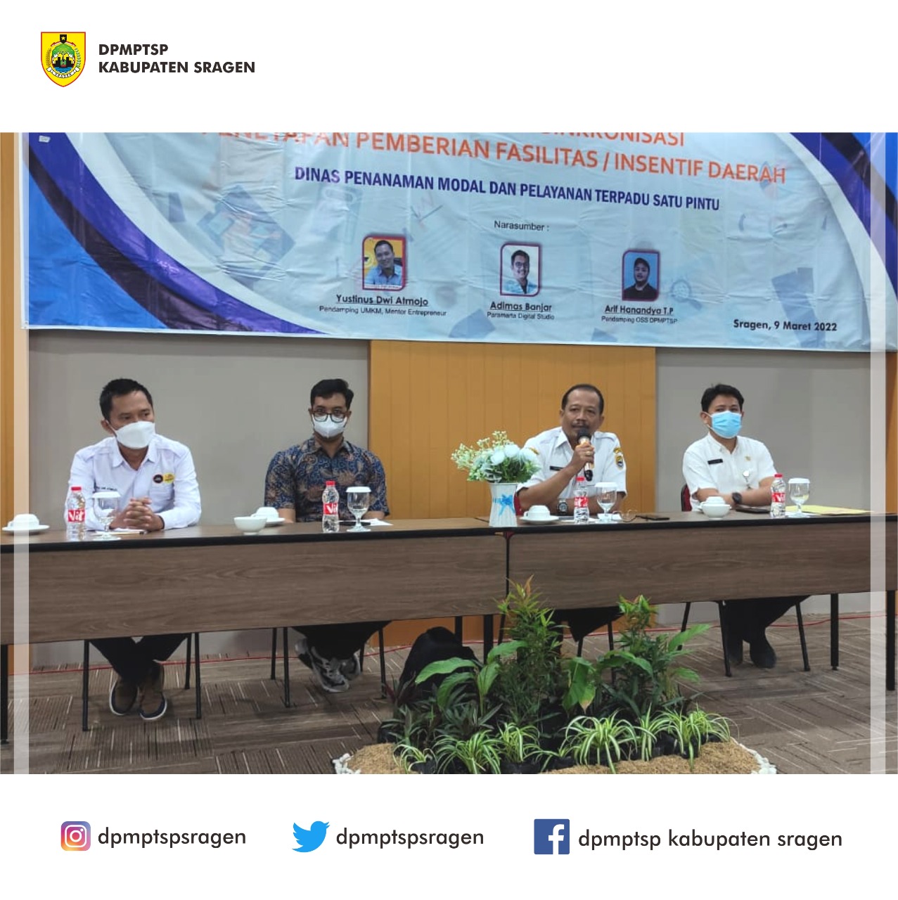 Kegiatan Koordinasi dan Sinkronisasi Penetapan Pemberian / Fasilitas Insentif Daerah (Pelatihan Bagi Pelaku UMKM) pada hari Rabu, 9 Maret 2022 di Front One Hotel Sragen.