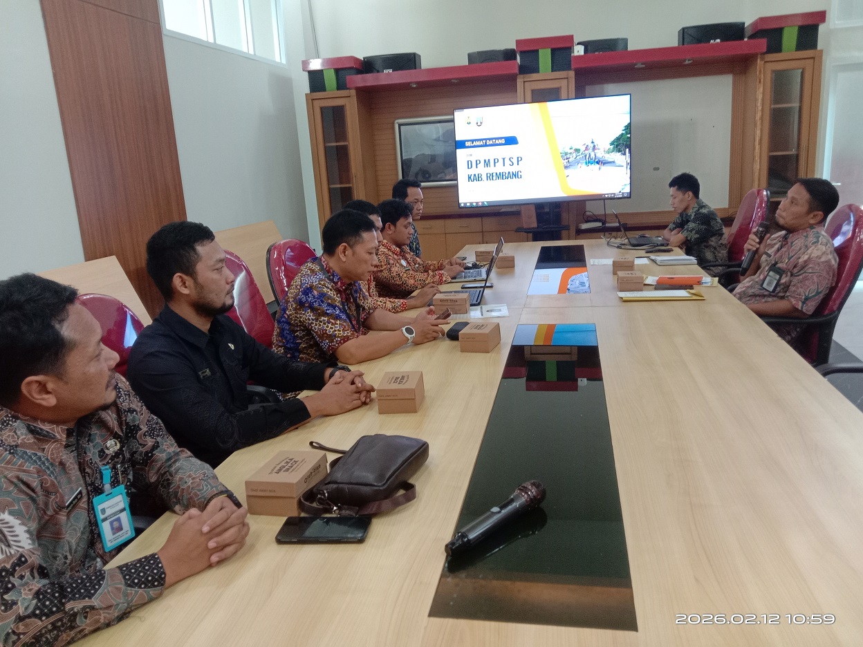 Pada Kamis (12/02/2026) DPMPTSP Kabupaten Sragen menerima kunjungan dari DPMPTSP Kabupaten Rembang sejumlah enam orang yang dipimpin oleh Kabid PTSP, Bapak Rizal Mustaqim. Tim diterima oleh Koordinator PTSP, Bapak Arianto, didampingi tim dari Substansi PTSP di OSS Lounge, Kompleks MPP Kabupaten Sragen.