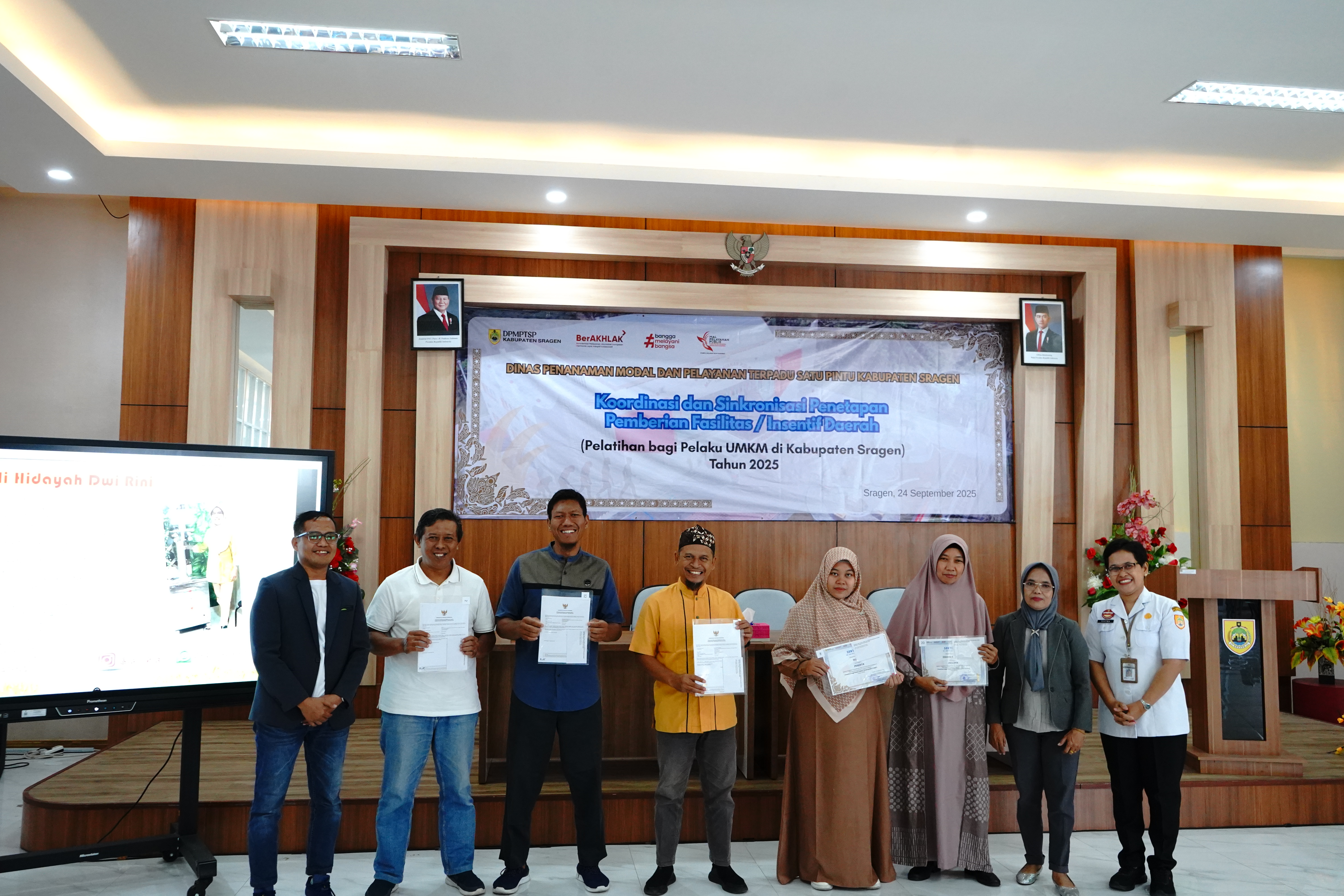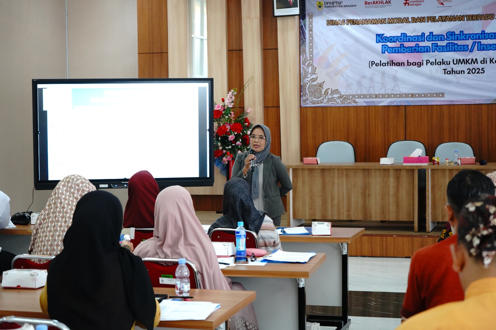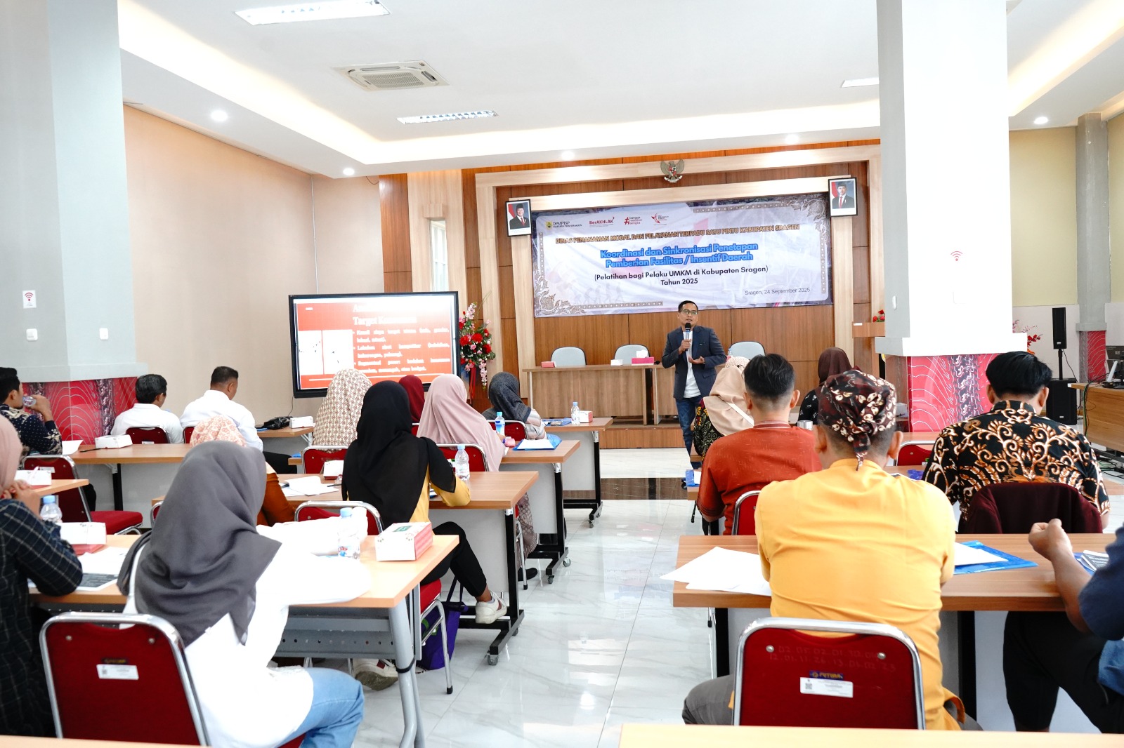 Dinas Penanaman Modal dan Pelayanan Terpadu Satu Pintu (DPMPTSP) Kabupaten Sragen kembali melaksanakan Kegiatan Koordinasi dan Sinkronisasi Penetapan Pemberian Fasilitas/Insentif Daerah bagi UMKM berupa Pelatihan Bagi Pelaku UMKM di Kabupaten Sragen Tahun 2025, bertempat di Aula MPP Askara Bumi Sukowati Kabupaten Sragen pada Rabu (24/09/2025). Pelatihan hari ini adalah pelatihan keempat dari lima pelatihan yang direncanakan.
