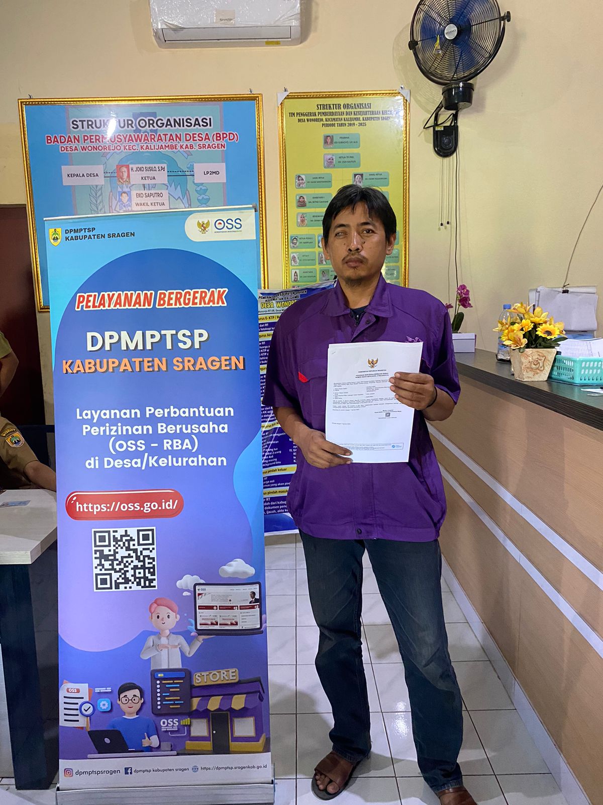 Pelayanan Bergerak (#11) DPMPTSP Kabupaten Sragen bertempat di kantor Desa Wonorejo, Kecamatan Kalijambe pada Senin (07/08/2023)