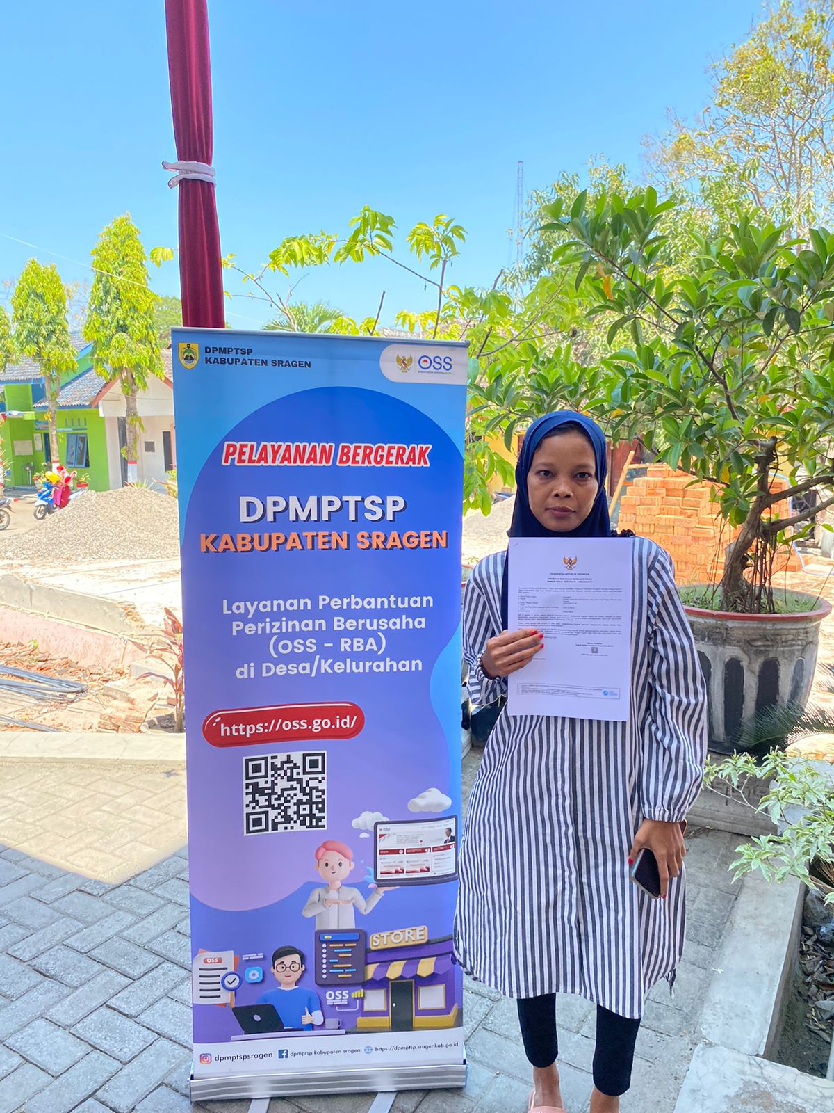 Pada Senin (11/09/2023) Pelayanan Bergerak DPMPTSP Kabupaten Sragen (#34) bertempat di kantor Kecamatan Jenar. Animo masyarakat sangat besar, terlihat dari banyaknya masyarakat yang mengurus Nomor Induk Berusaha (NIB) untuk legalitas usaha mereka. Pada kesempatan ini, Bupati Sragen, Ibu dr. Hj. Kusdinar Untung Yuni Sukowati, berkenan menyerahkan secara langsung NIB kepada beberapa pelaku usaha. Beliau juga menyampaikan pentingnya memiliki NIB bagi pelaku usaha.