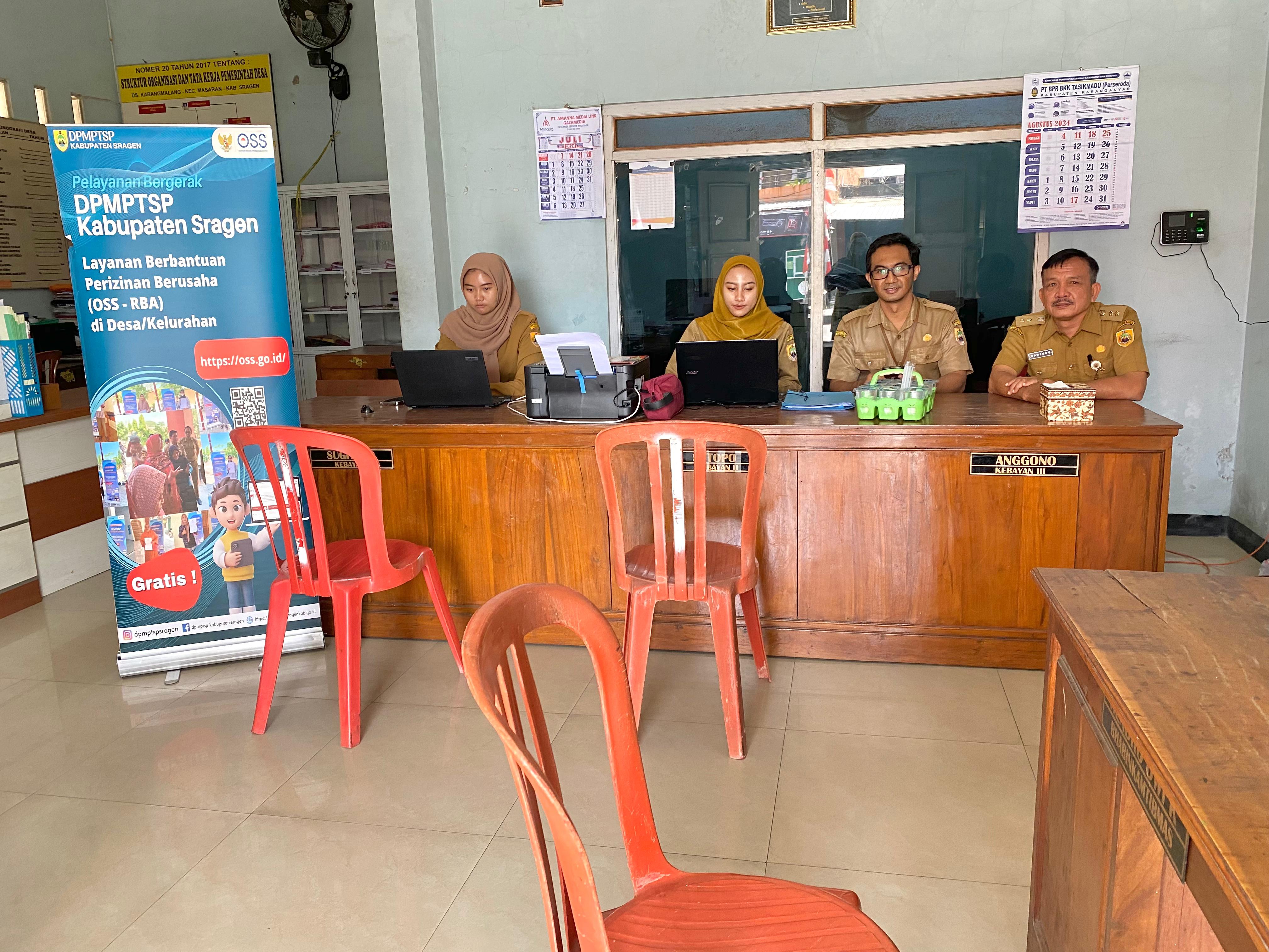 Pada Senin (12/8/2024) Pelayanan Bergerak DPMPTSP Kabupaten Sragen (#38) berada di wilayah Kecamatan Masaran, tepatnya di kantor Desa Karangmalang, Kecamatan Masaran.