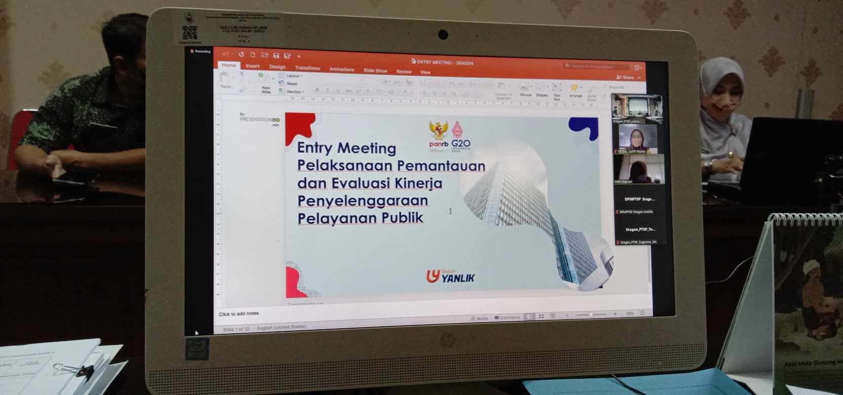 DPMPTSP Kabupaten Sragen melaksanakan kegiatan Pemantauan dan Evaluasi Kinerja Peneyelenggaraan Pelayanan Publik (PEKPPP) Tahun 2022 yang dilakukan oleh Deputi Bidang Pelayanan Publik Kementerian PANRB berkolaborasi dengan Biro Organisasi Pemerintah Provinsi Jawa Tengah pada hari Kamis, 8 September 2022 melalui aplikasi Zoom Meeting.