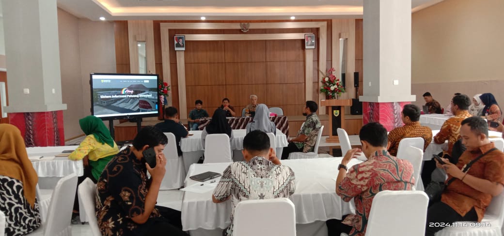 Pada Kamis (14/11/2024) Dinas Penanaman Modal dan Pelayanan Terpadu Satu Pintu Kabupaten Sragen menyelenggarakan kegiatan Penyampaian Laporan Akhir Pengembangan SIPELANGI (Sistem Informasi Peluang Investasi) sekaligus Bimbingan Teknis Implementasi SIPELANGI bagi OPD dan Pelaku Usaha pemegang hak akses SIPELANGI bertempat di Aula MPP Askara Bumi Sukowati Kabupaten Sragen.
