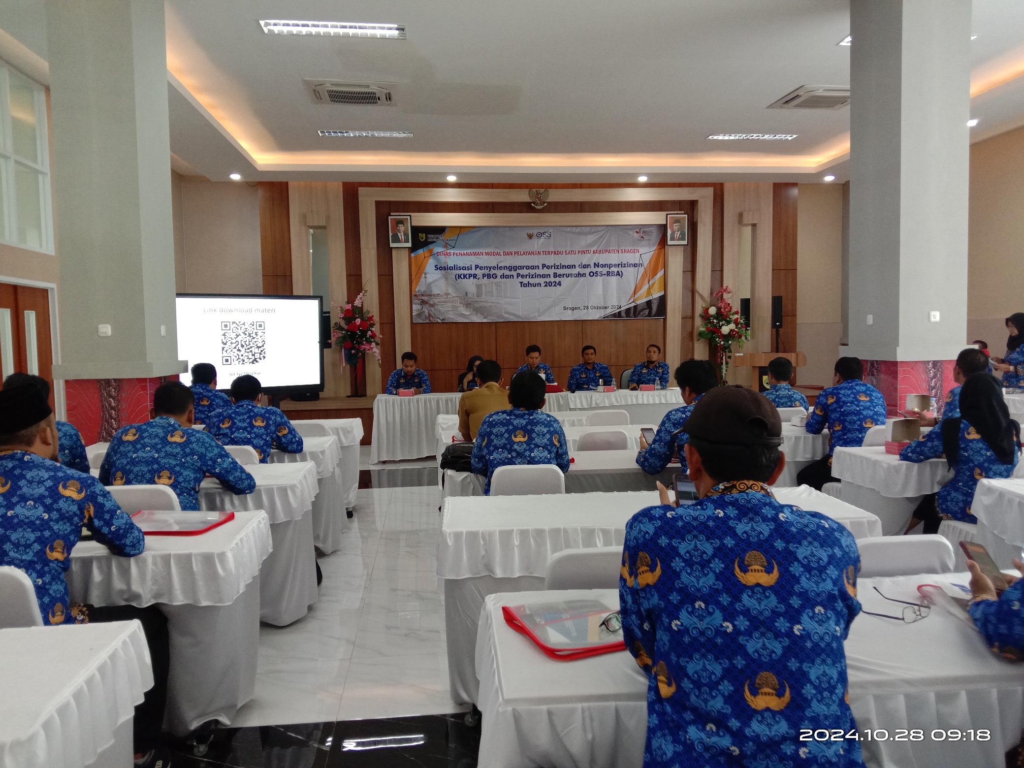 Sosialisasi Penyelenggaraan Perizinan dan Nonperizinan Tahun 2024 yang diselenggarakan oleh Dinas Penanaman Modal dan Pelayanan Terpadu Satu Pintu Kabupaten Sragen sampai pada pelaksanaan ketiga dari empat kali pelaksanaan yang dijadwalkan. Hari ini Senin (28/10/2024) dihadiri oleh peserta sosialisasi perwakilan dari Kecamatan Sambirejo dan Tanon serta perwakilan dari desa-desa yang berada di wilayah Kecamatan Sambirejo dan Tanon.