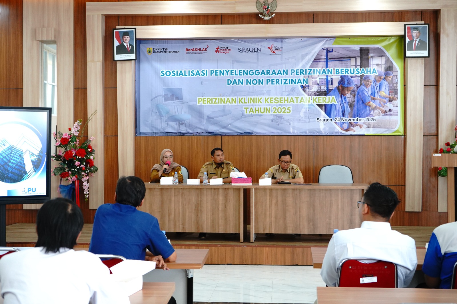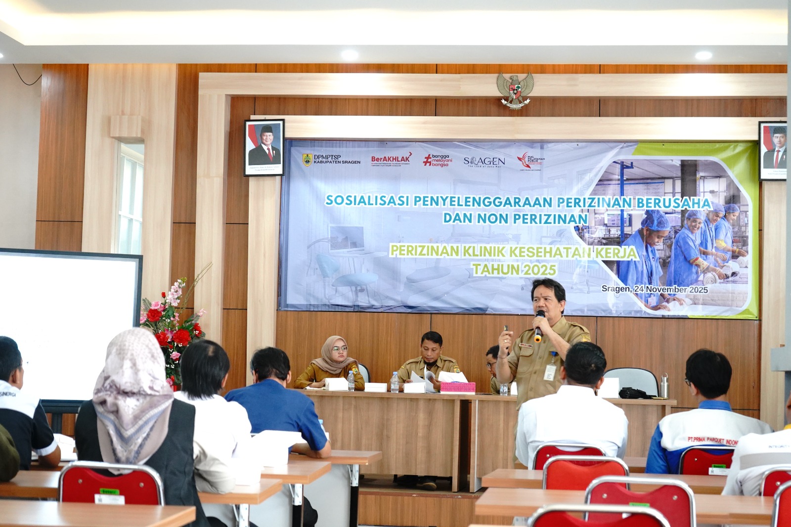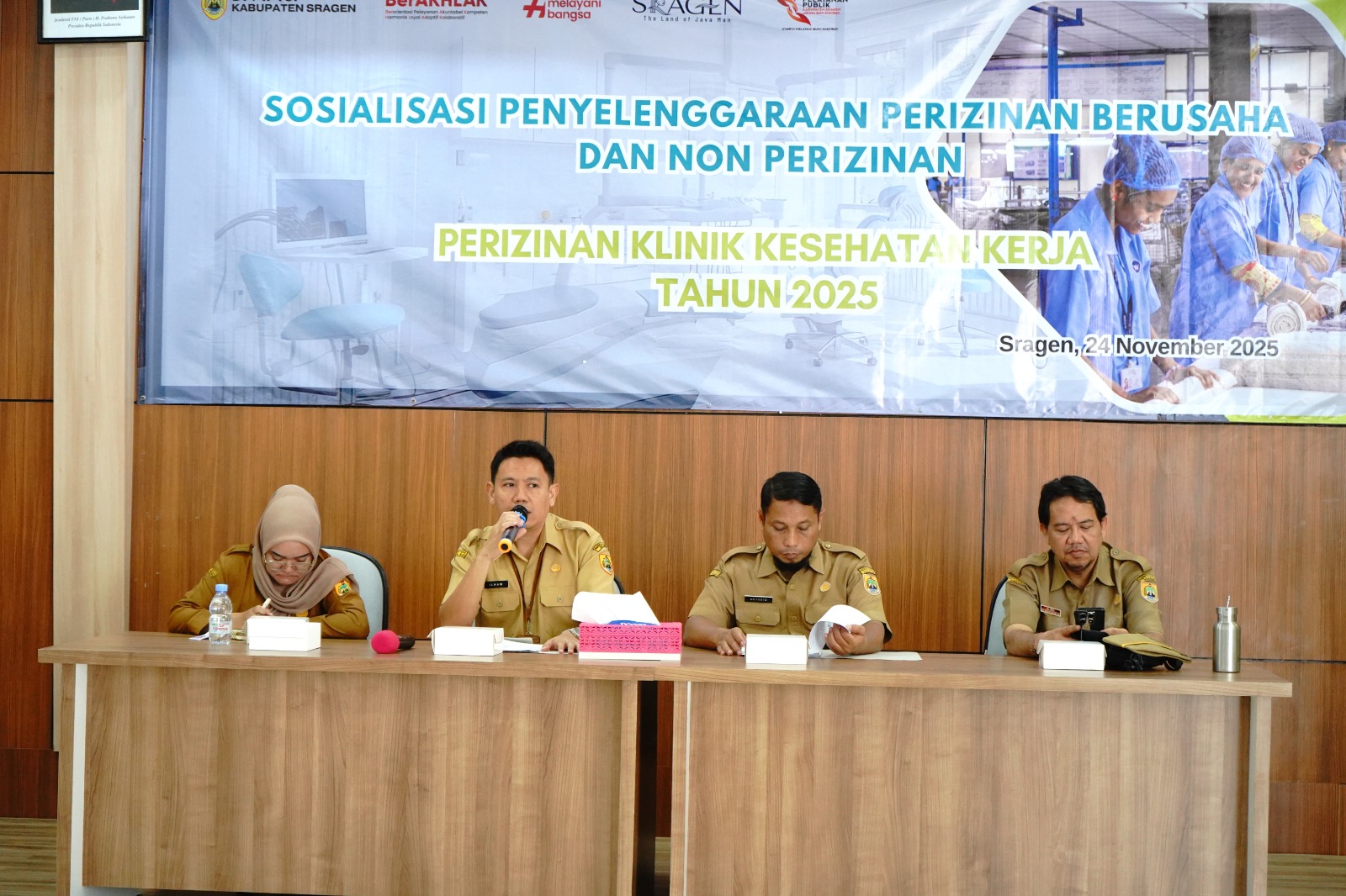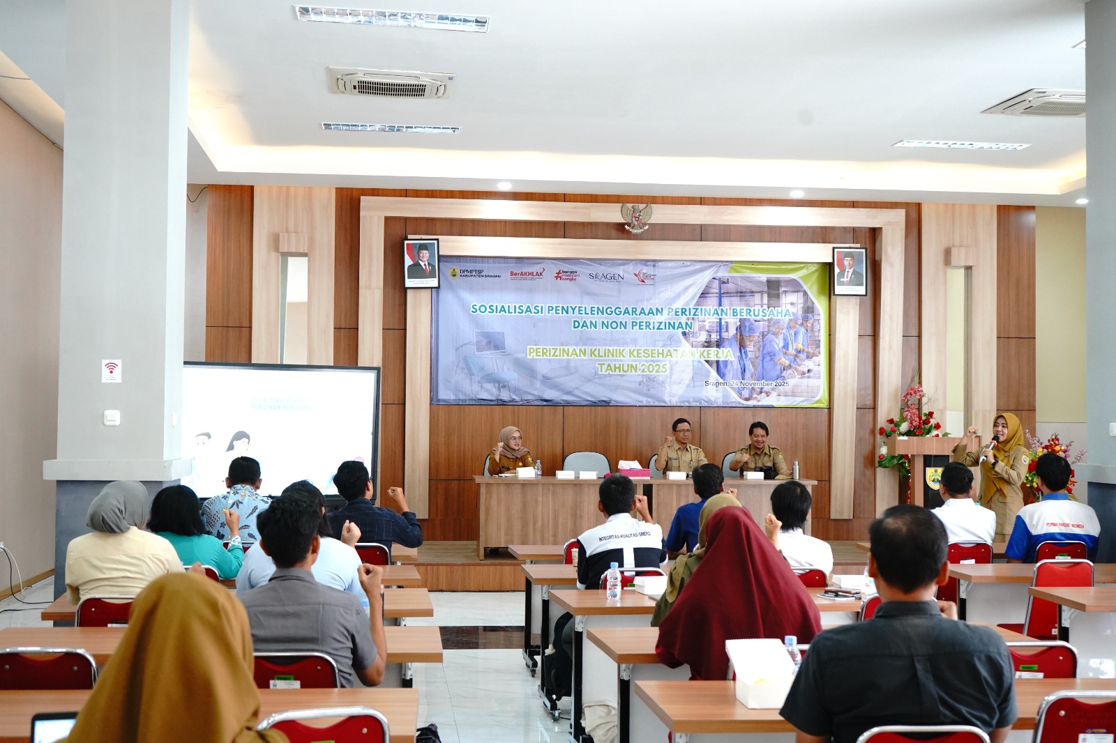 Dalam rangka menindaklanjuti Peraturan Menteri Kesehatan Nomor 11 Tahun 2025 tentang Standar Kegiatan Usaha dan Standar Produk/Jasa pada Penyelenggaraan Perizinan Berusaha Berbasis Risiko Subsektor Kesehatan, DPMPTSP Kabupaten Sragen menyelenggarakan kegiatan Sosialisasi Perizinan Klinik Kesehatan Kerja pada Senin (24/11/2025) bertempat di Aula MPP Askara Bumi Sukowati Kabupaten Sragen. Sosialisasi dibuka oleh Sekretaris DPMPSTP Kabupaten Sragen, Bapak Ilham Kurniawan, ST, MM.
