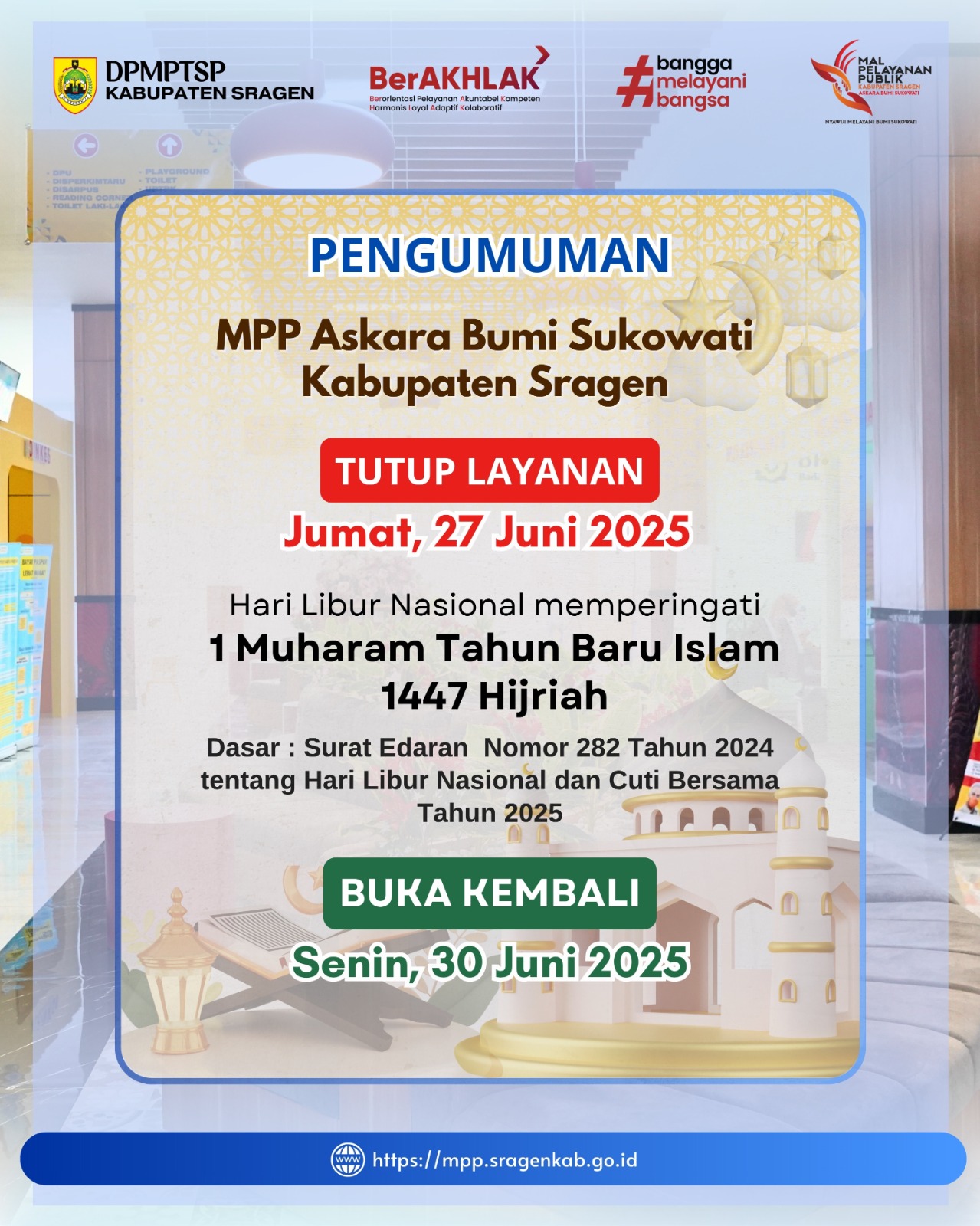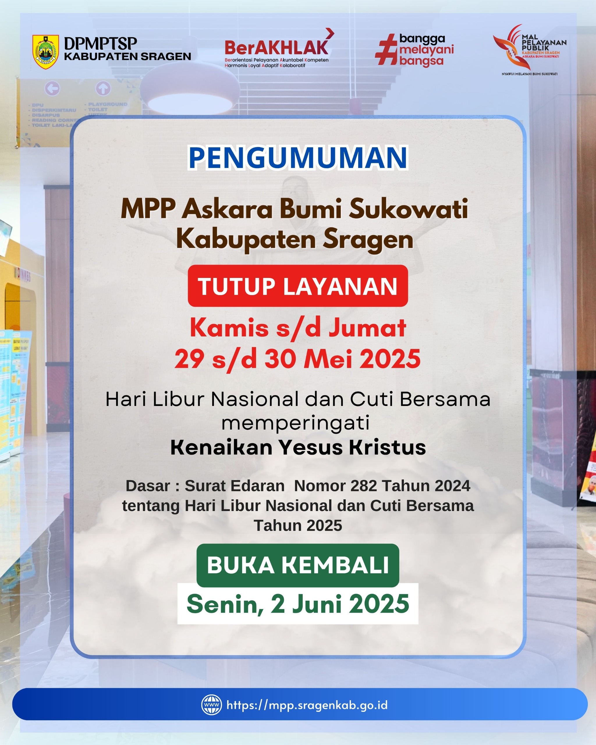 DPMPTSP dan MPP Askara Bumi Sukowati Sragen Tutup Layanan