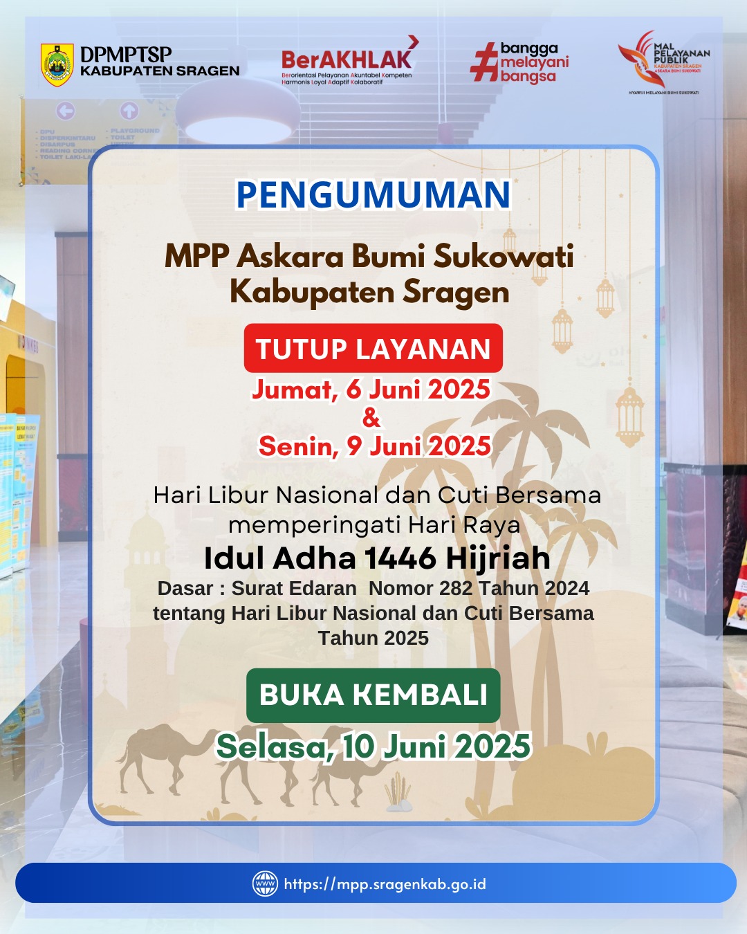 DPMPTSP, MPP Askara Bumi Sukowati Tutup Hari Raya Idul Adha