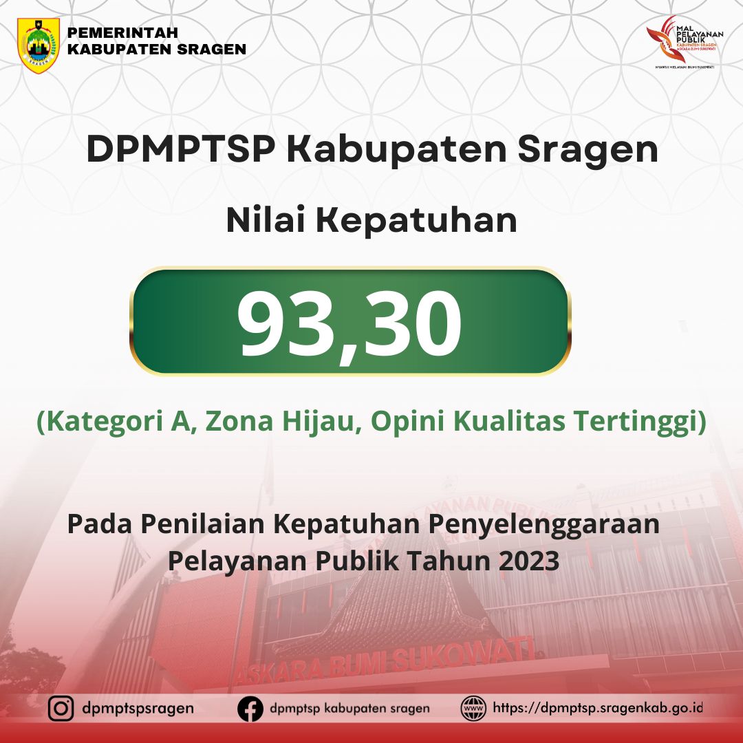 Nilai Kepatuhan Penyelenggaraan Pelayanan Publik Tahun 2023