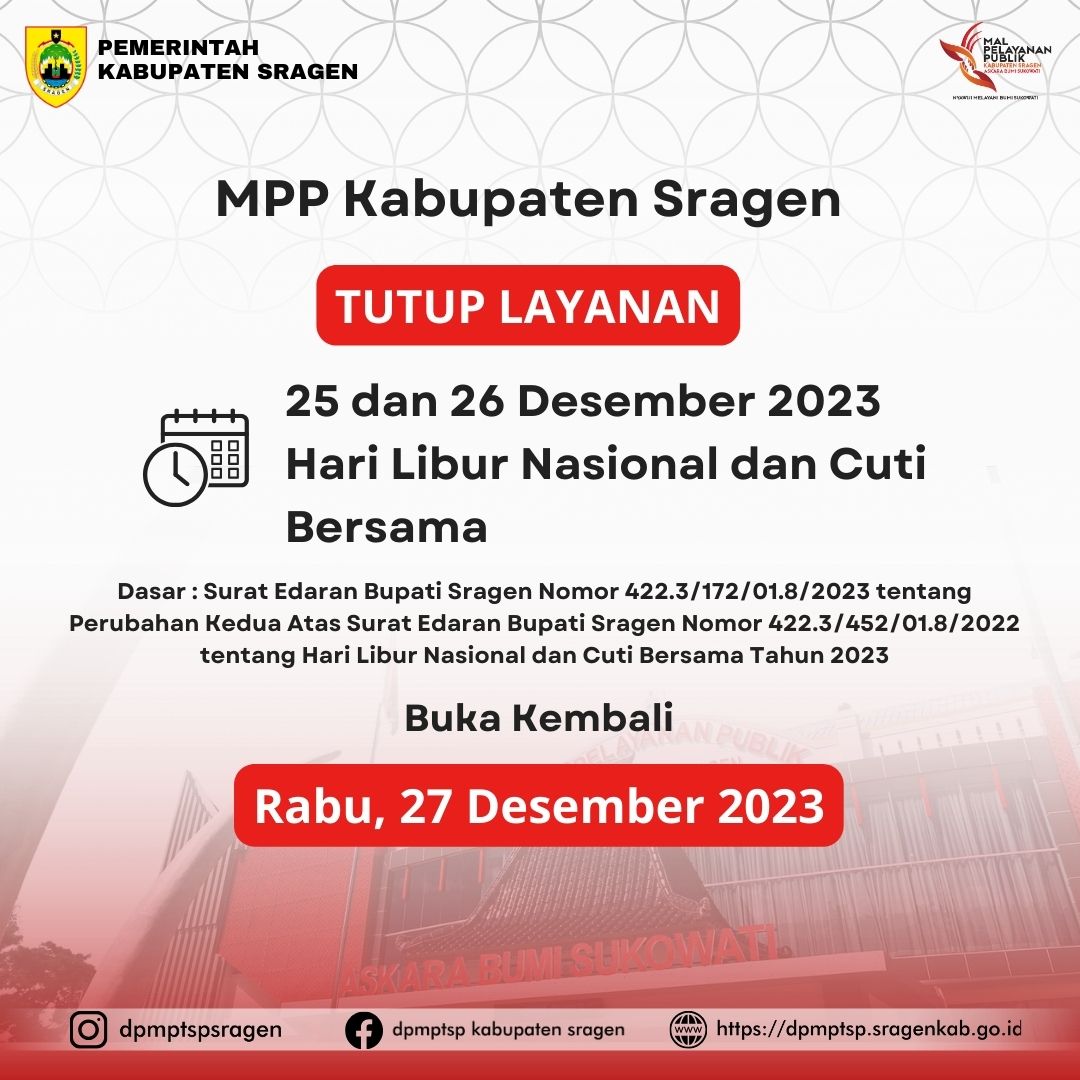 MPP Tutup Libur & Cuti Bersama Natal 2023